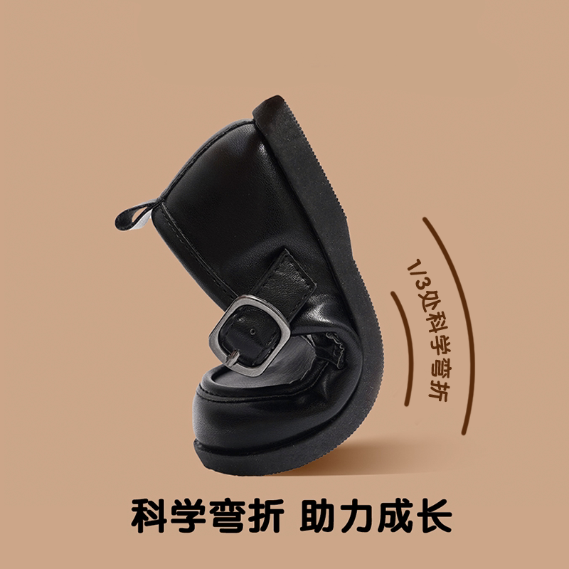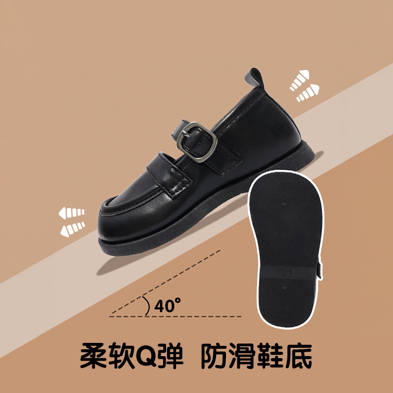 TOPSTAR儿童皮鞋女童公主小皮鞋英伦风男童软底复古演出小黑鞋子