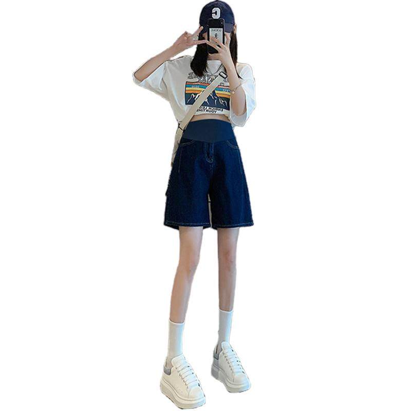 孕妇短裤夏季薄款外穿不勒肚子阔腿裤2025新款打底牛仔裤子女夏装