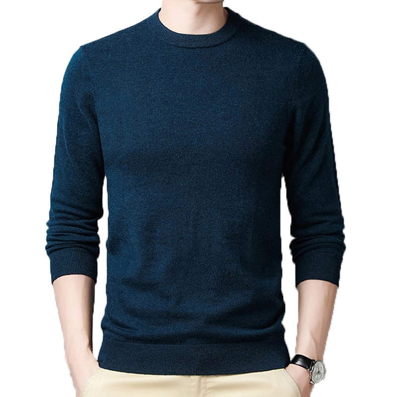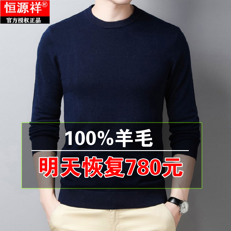 恒源祥男士羊毛衫圆领秋季薄款针织休闲毛衣中年长袖纯色打底衫男