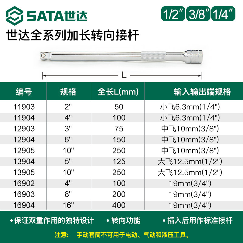 Sata/世达套筒延长杆锁定转向接杆棘轮扳手小中大飞柄加长杆工具