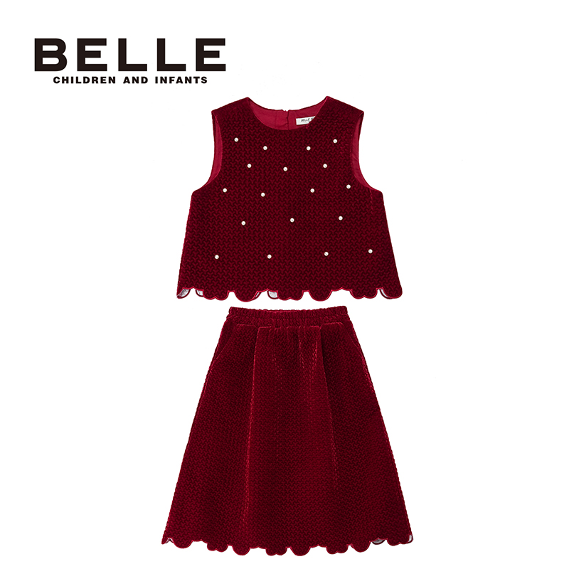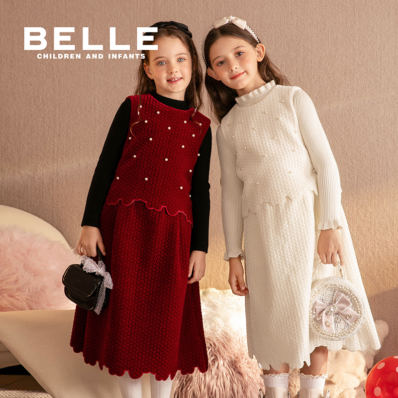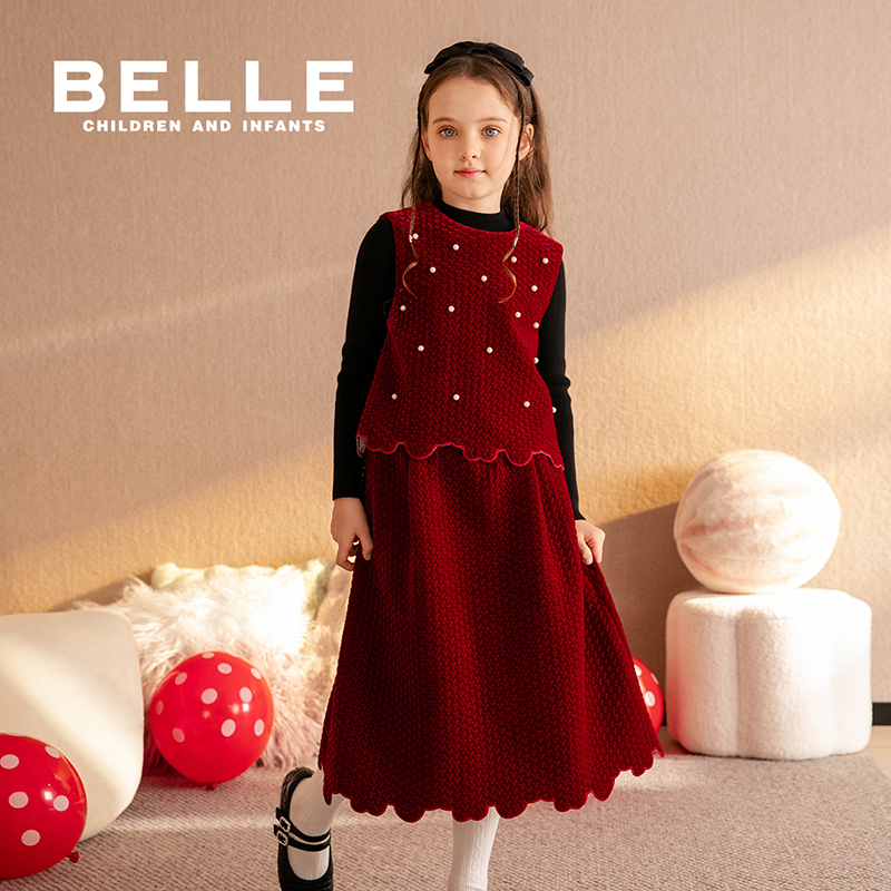 百丽童装无袖背心半身裙女童2025秋冬套装小女孩小香风儿童两件套
