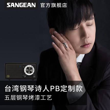 SANGEAN/山进 莫扎特蓝牙锂电音箱迷你低音炮复古实木高端收音机