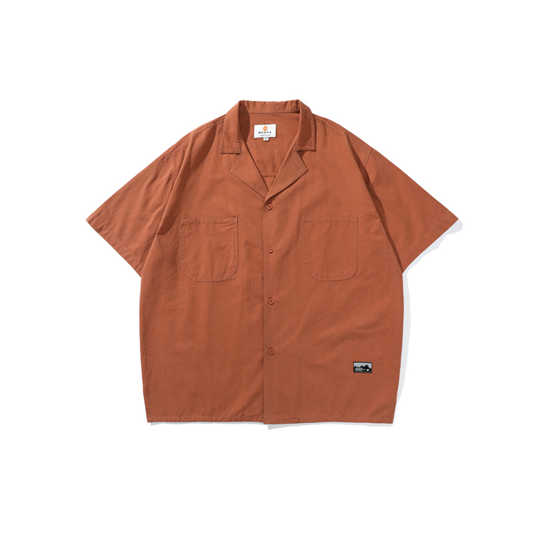 友町 夏季 日系复古户外风古巴领纯棉短袖衬衫男女潮纯色休闲