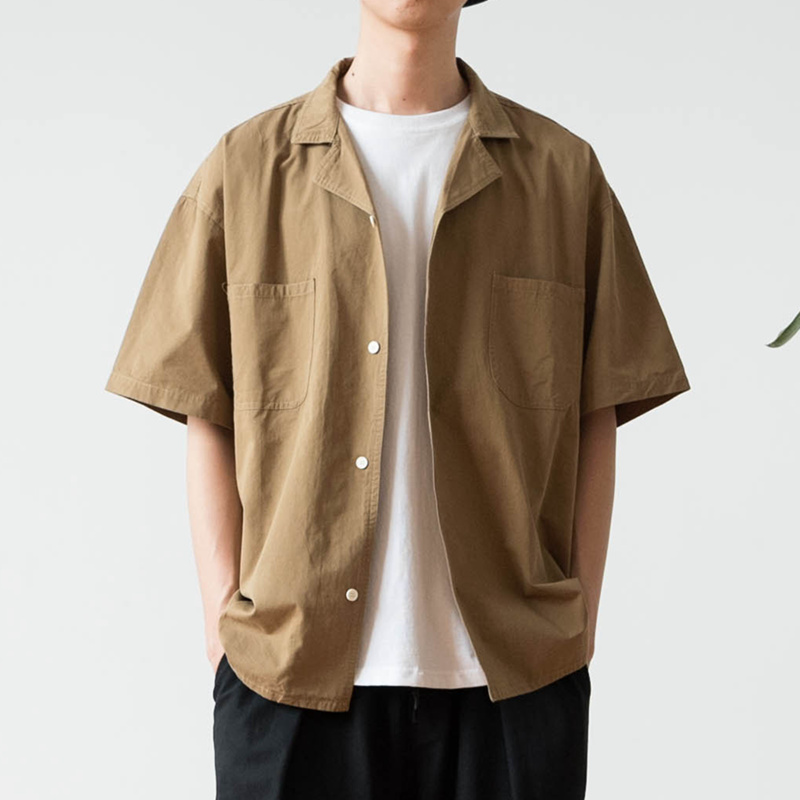 户外风古巴领纯棉短袖衬衫