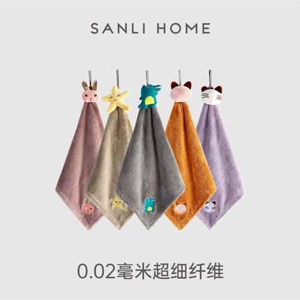三利卡通可爱挂式擦手巾吸水速干儿童毛巾小方巾厨房卫生间搽手帕