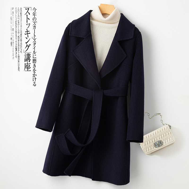 高端秋冬新款羊绒大衣女双面呢100%纯羊毛中长款系带超显瘦双面绒
