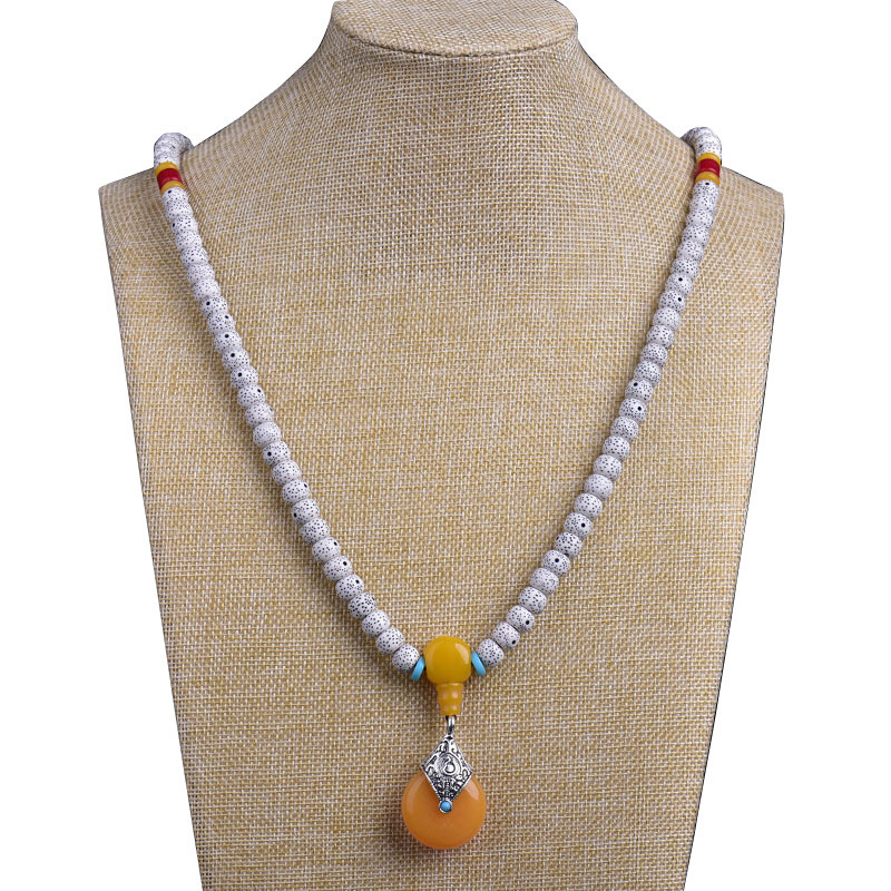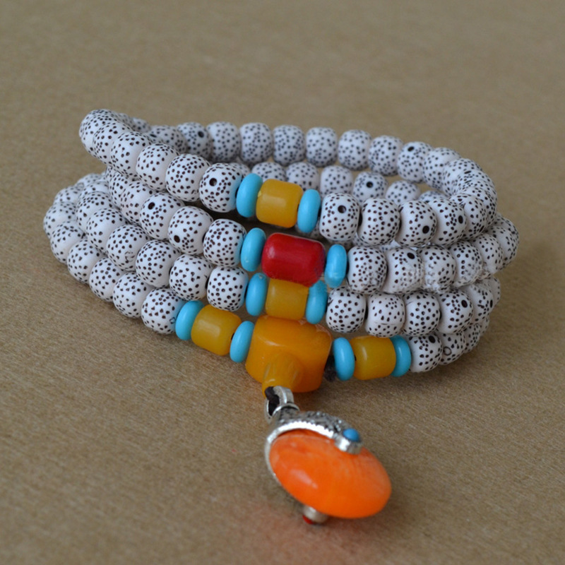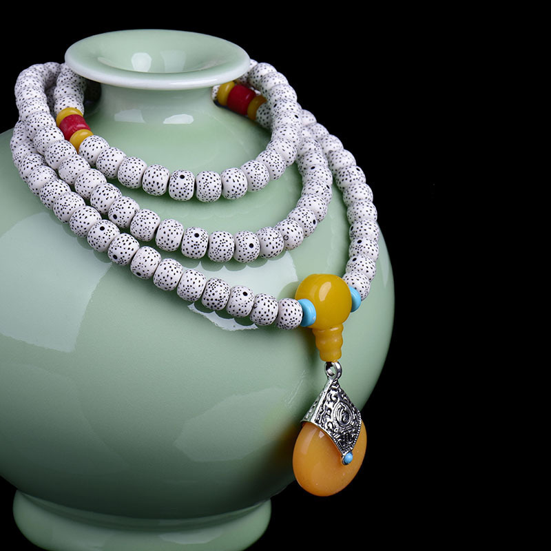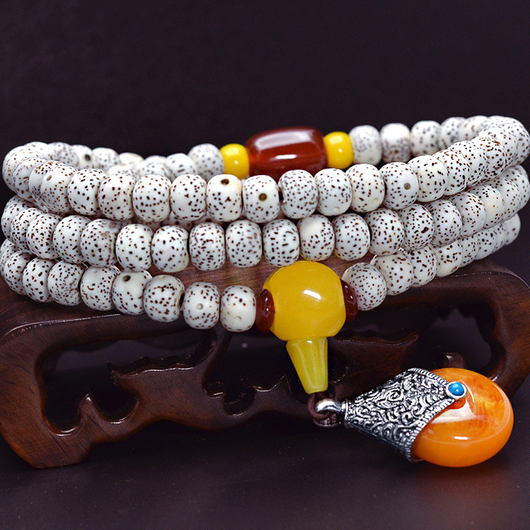 正月菩提项链108颗仿星月菩佛珠手串手链蜜蜡款吊坠项饰中国风