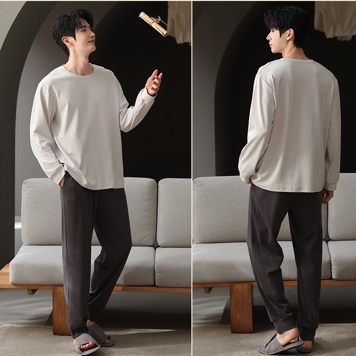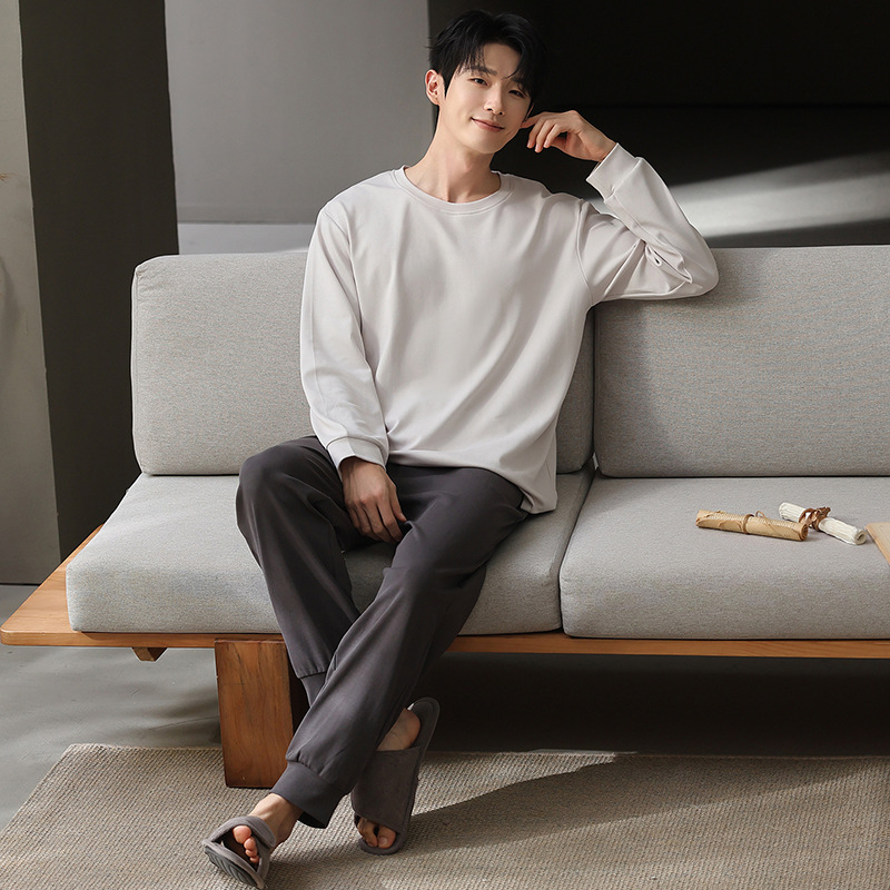 拉架棉睡衣男士长袖长裤家居服套装秋季高级感可外穿简约休闲