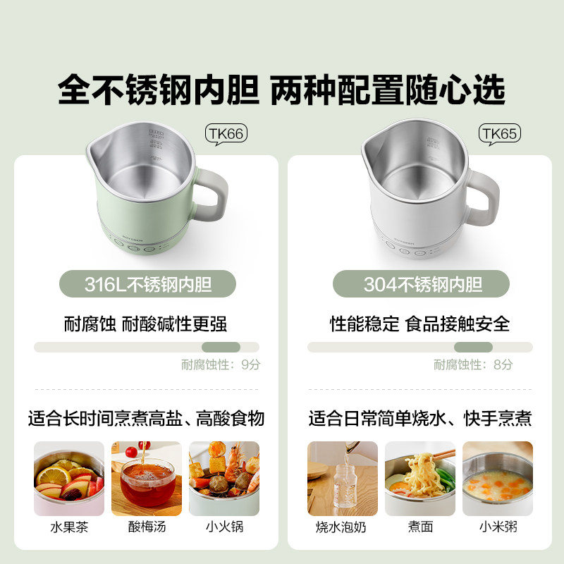 北鼎便携电热水壶差旅小型316不锈钢恒温烧水壶保温一体TK66&TK65