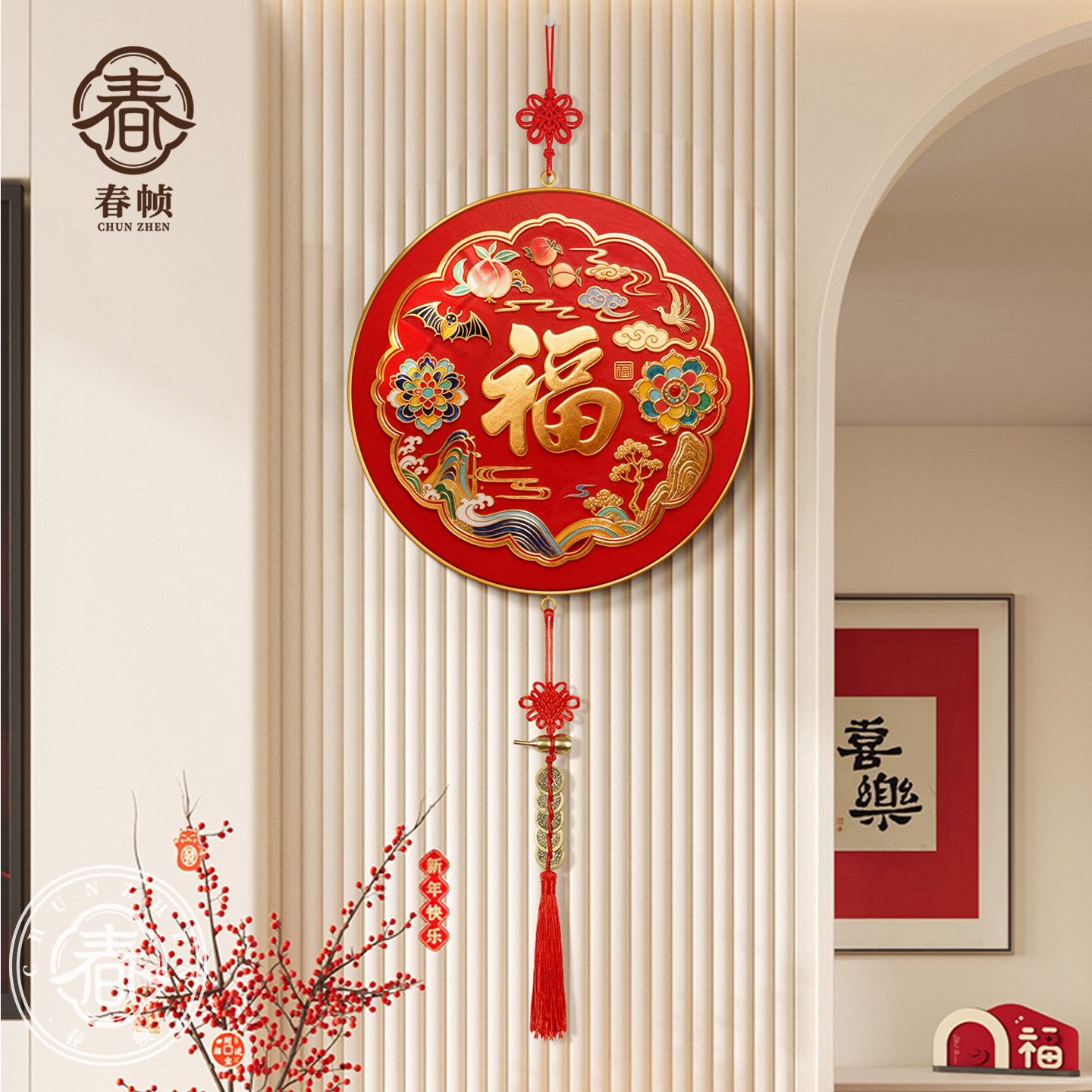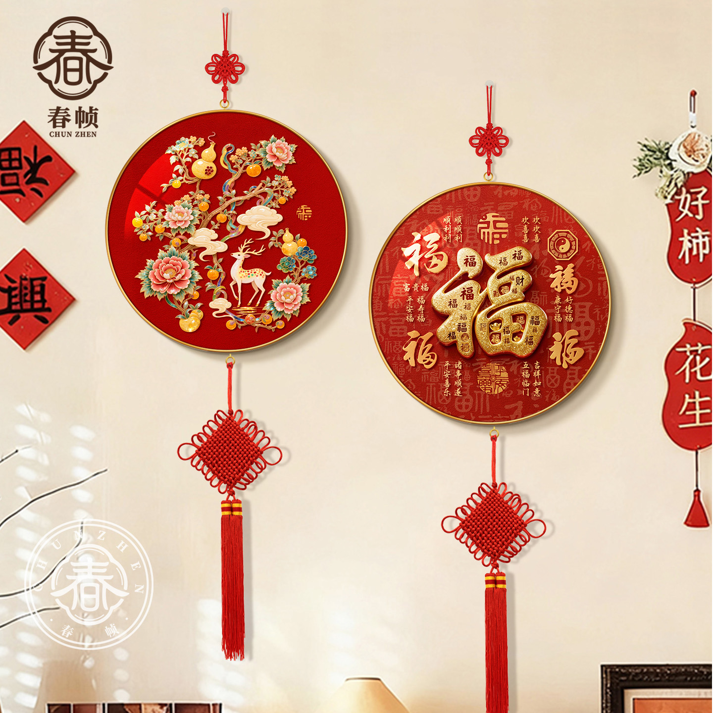新中式福字挂件喜庆客厅电视背景墙挂饰装饰画中国结圆形壁饰挂画