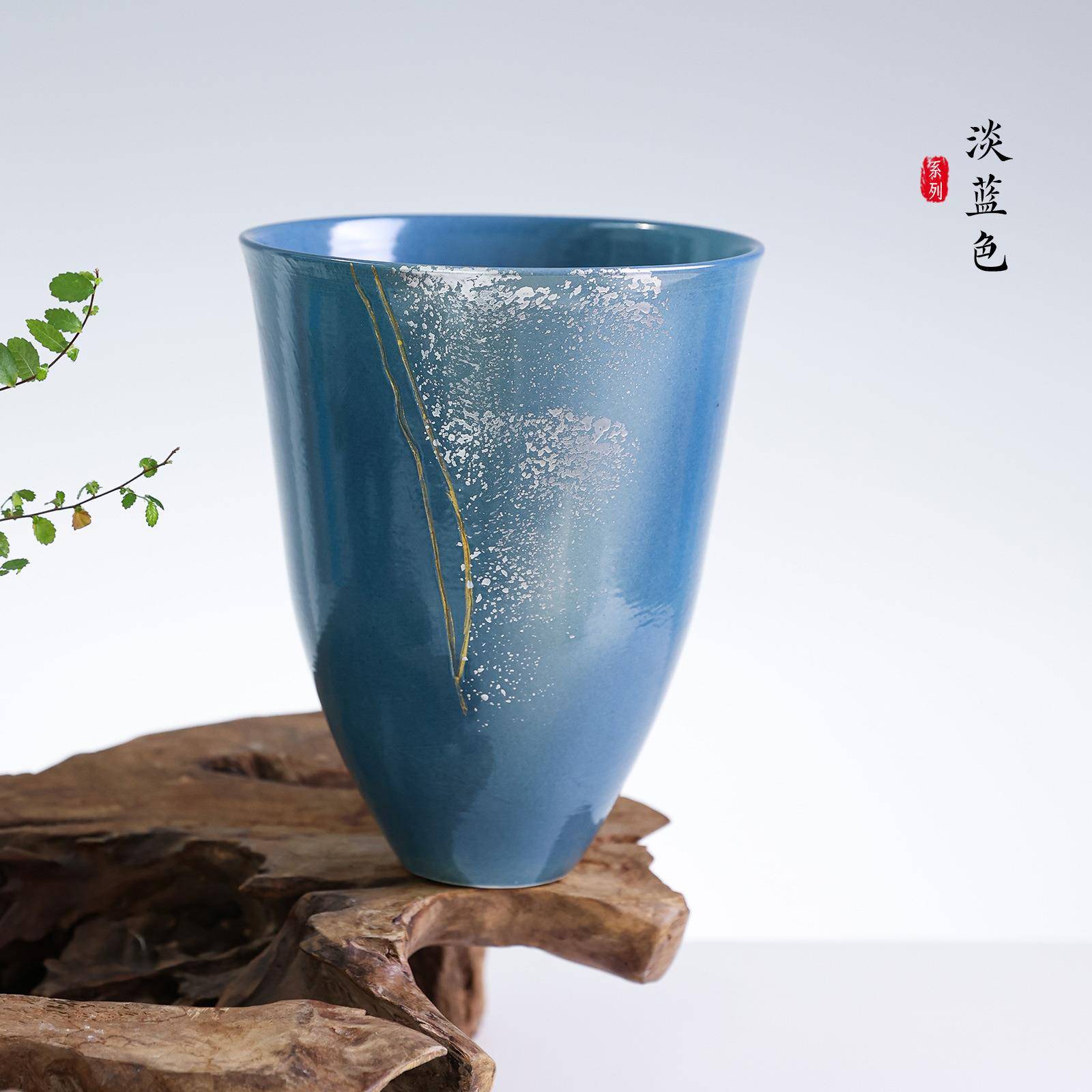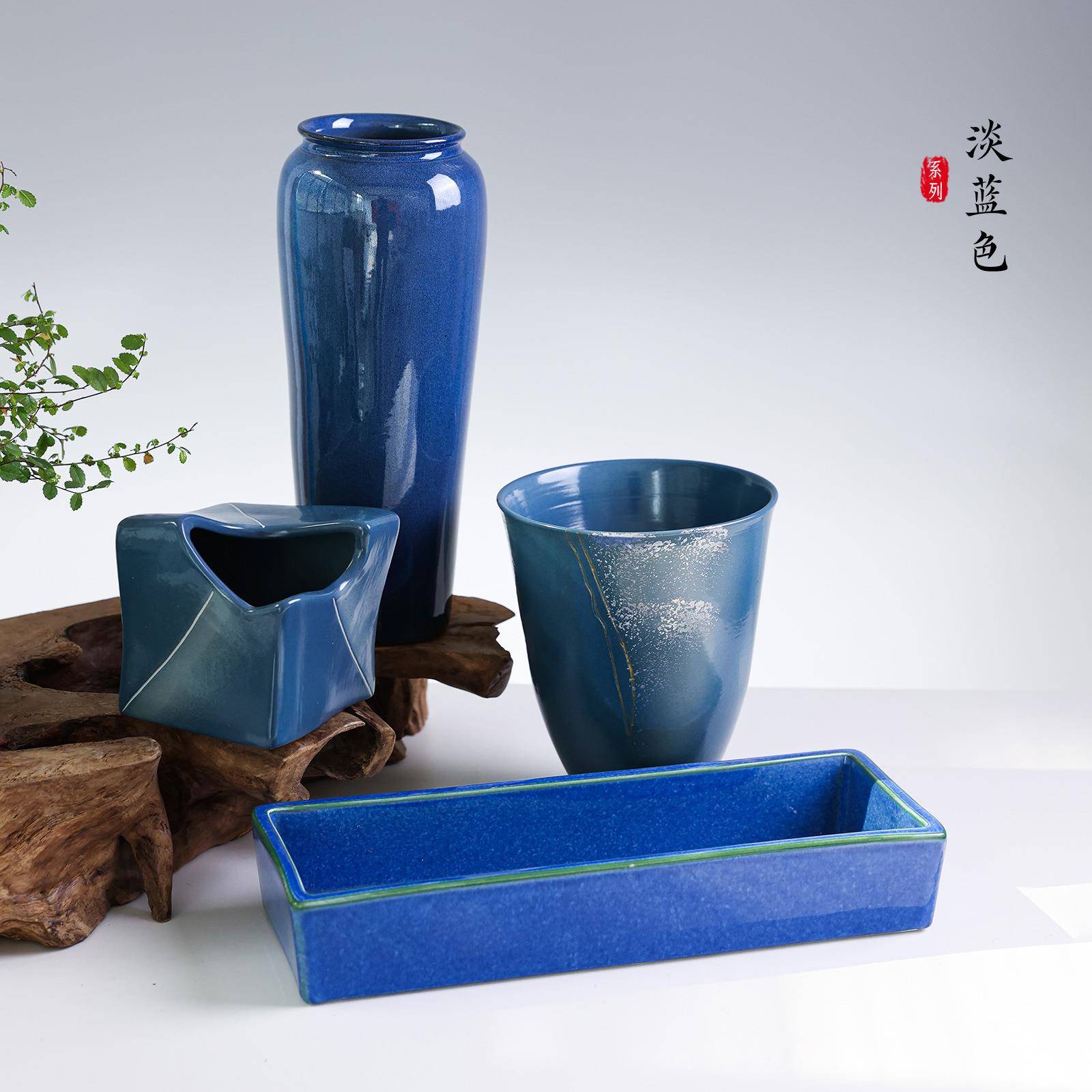 景德镇淡蓝色中式花瓶花盘系列陶瓷现代简约装饰客厅摆件