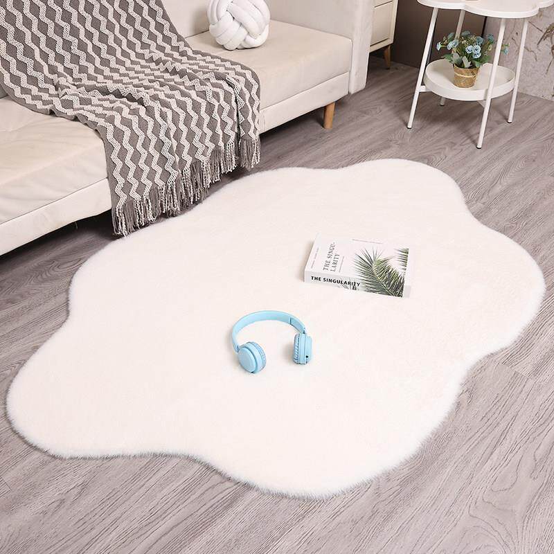 白色短毛绒云朵地毯少女床边毯不规则家用客厅茶几地垫镜前毛毛毯