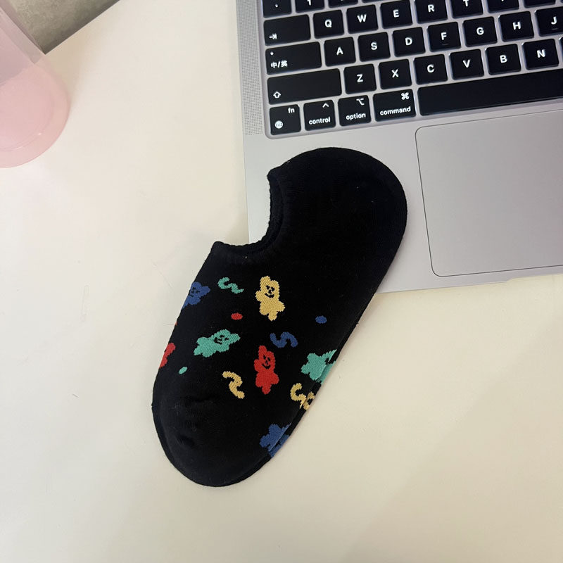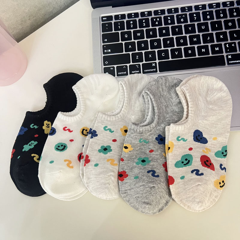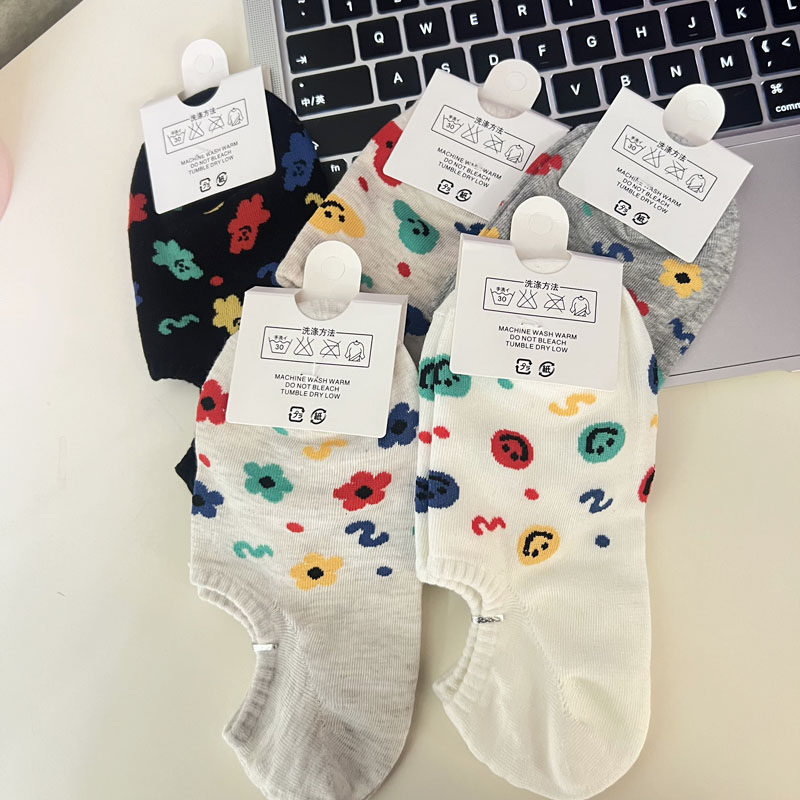 袜子女短袜纯棉春夏ins低帮浅口韩国可爱小花隐形硅胶不掉跟船袜
