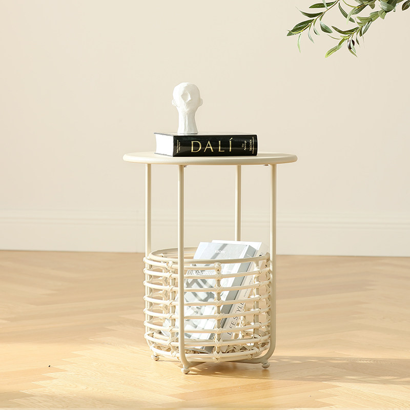 mwh曼好家藤编茶几小型储物简约圆形边几客厅沙发角几边柜置物架
