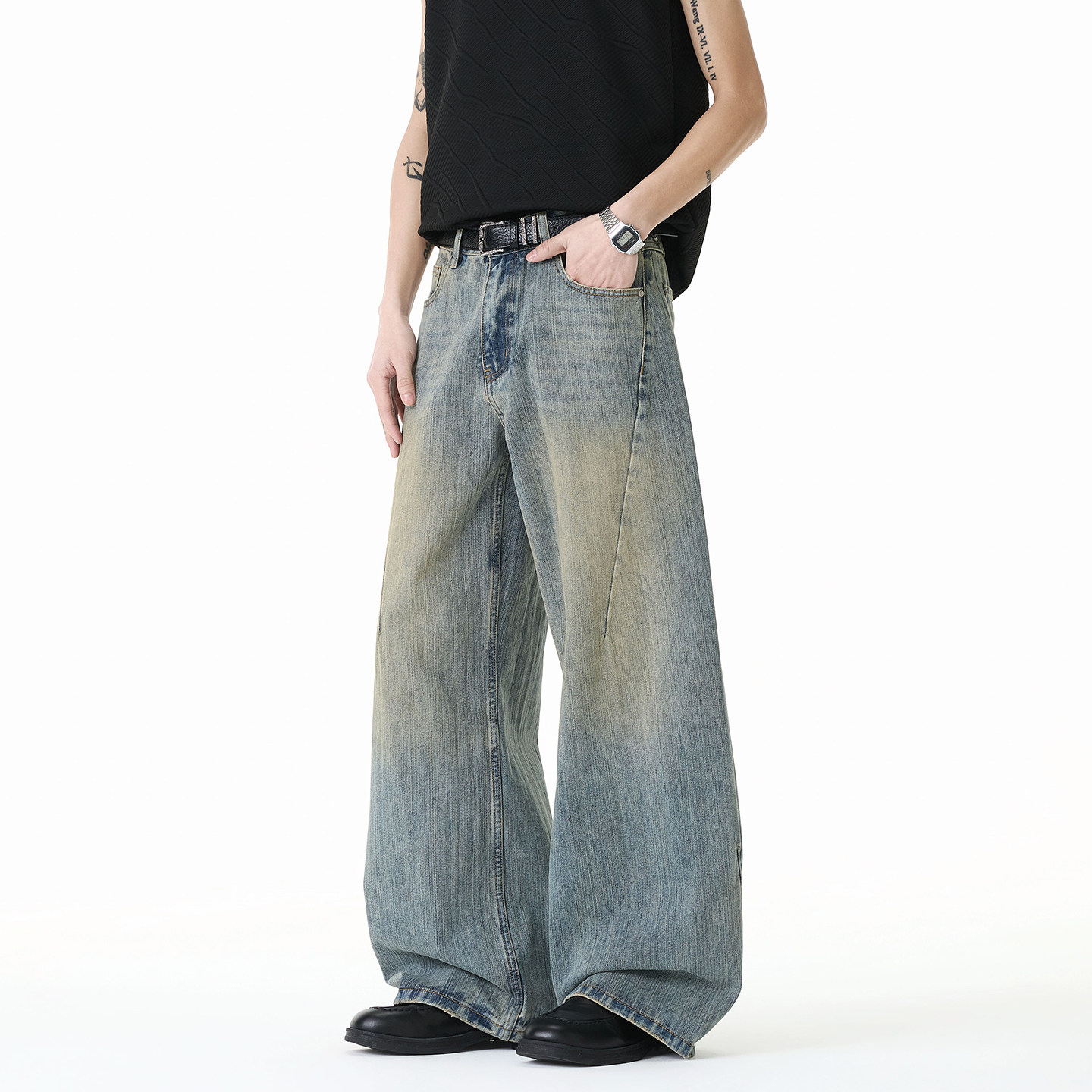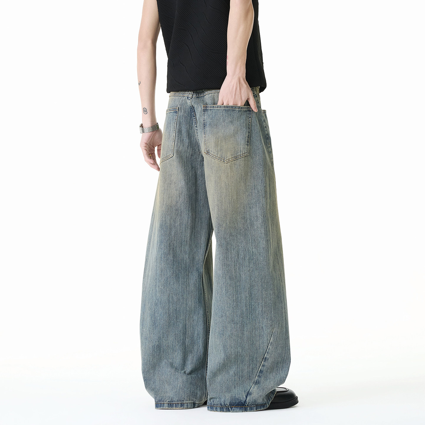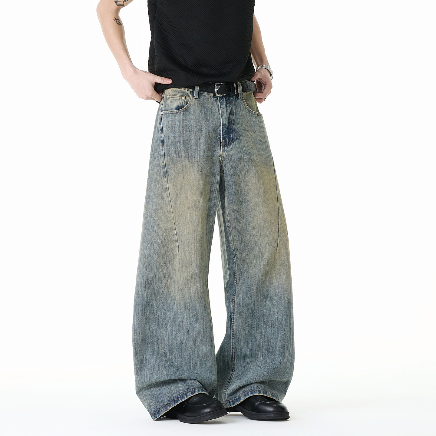 美式复古水洗牛仔裤阔腿裤