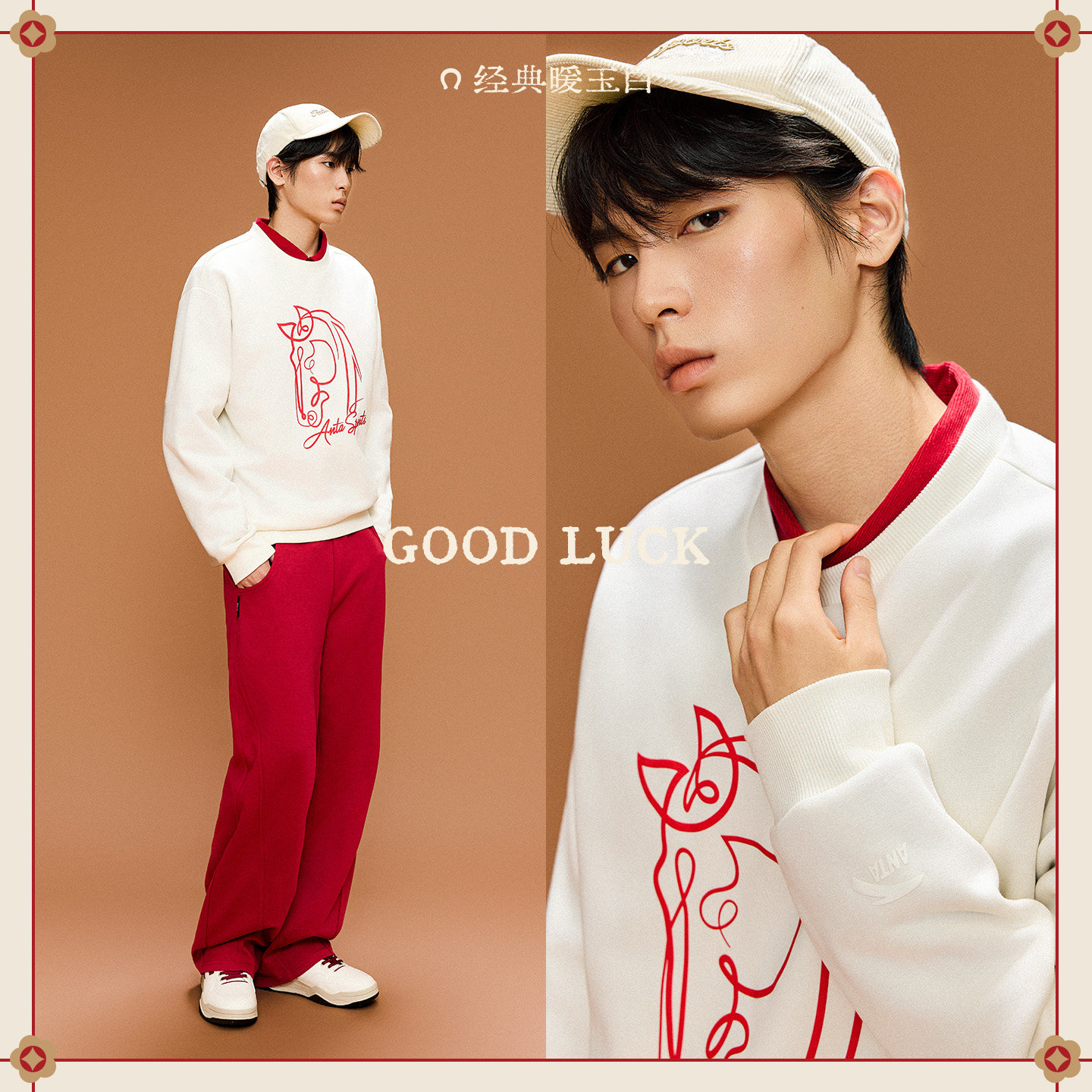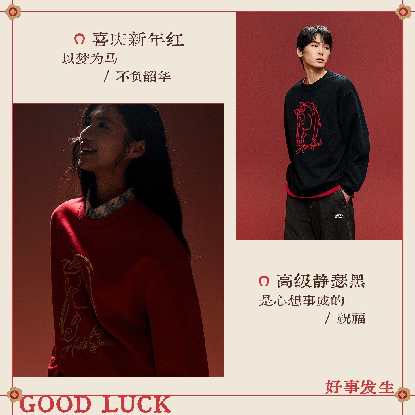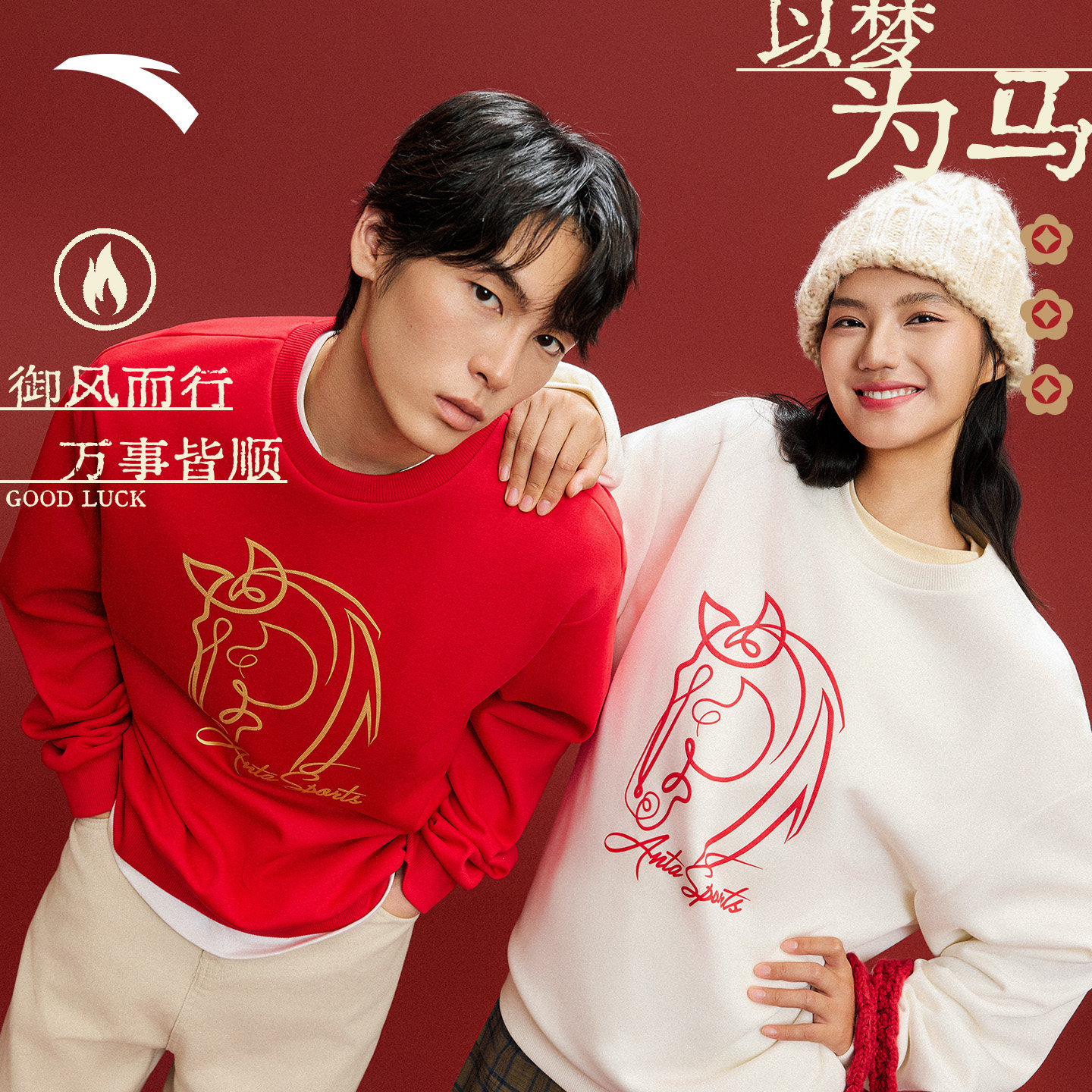 安踏好事发生加绒卫衣男加厚保暖圆领套头衫休闲本命年运动上衣女
