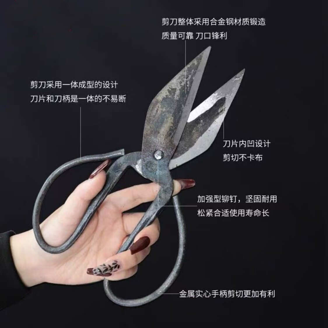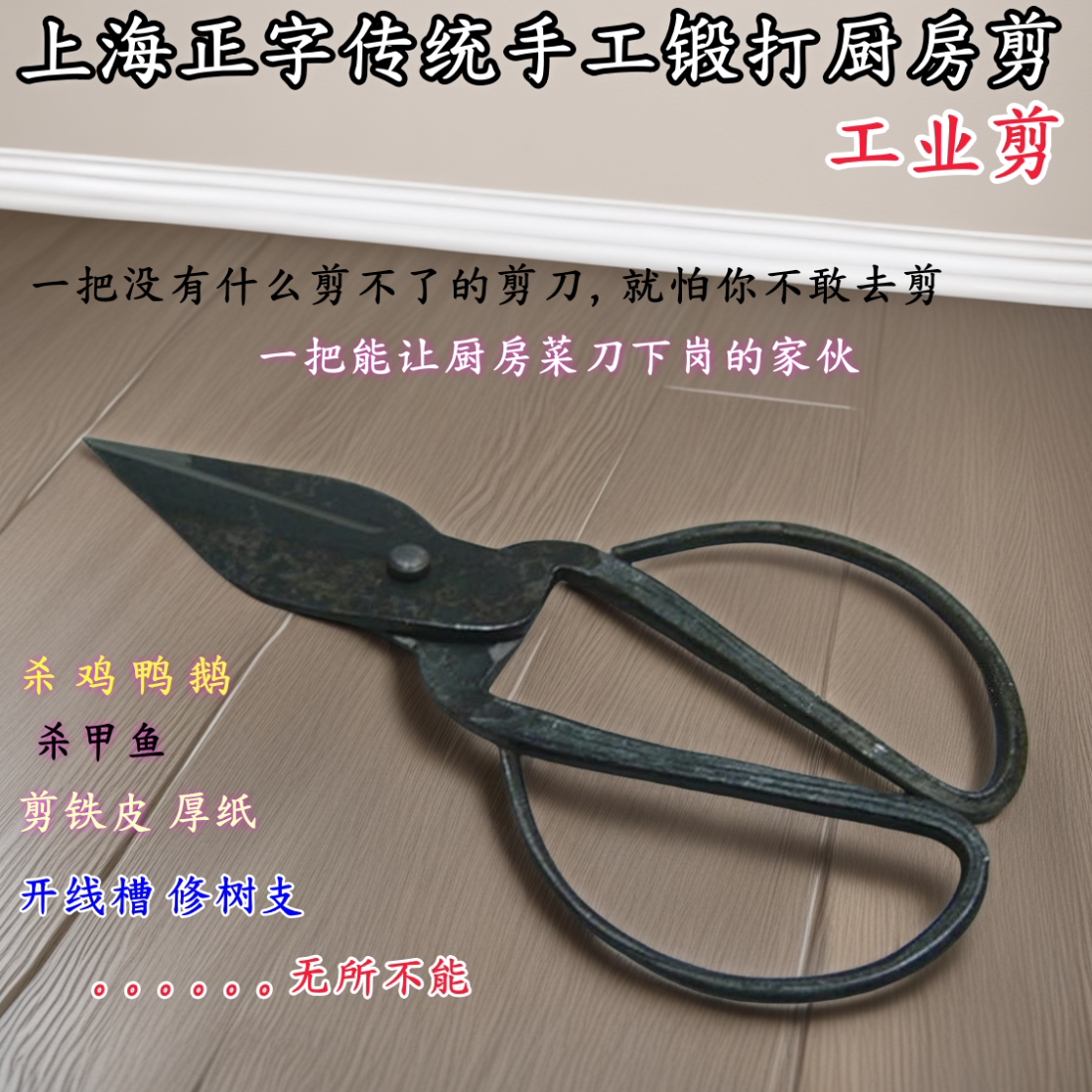 上海正字手工锻打家用厨房剪强力工业剪碳钢剪刀鸡鸭骨鱼骨甲鱼剪