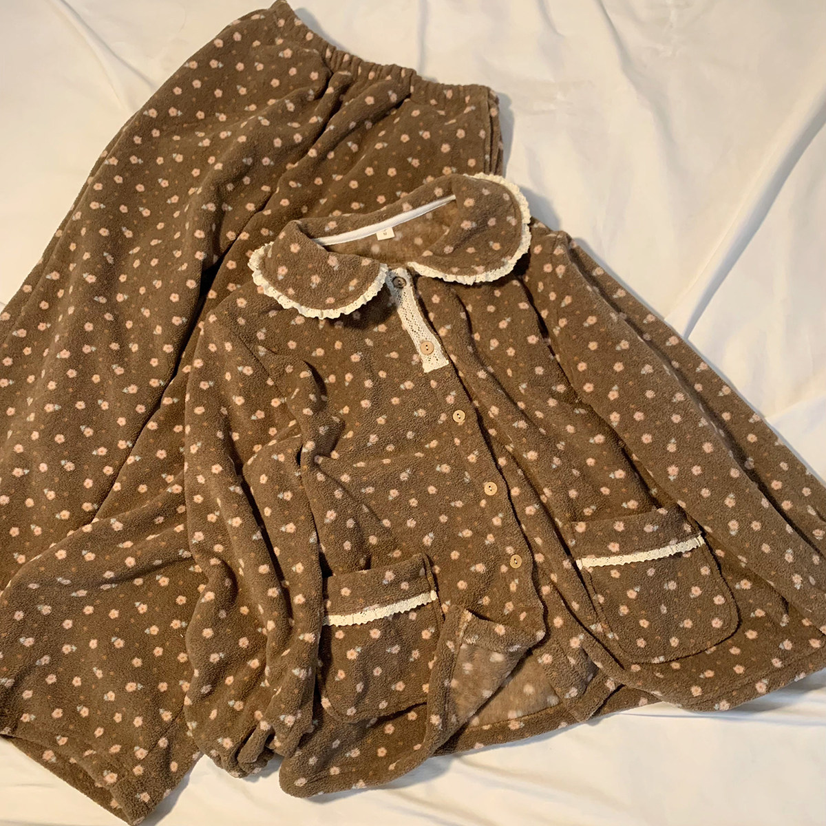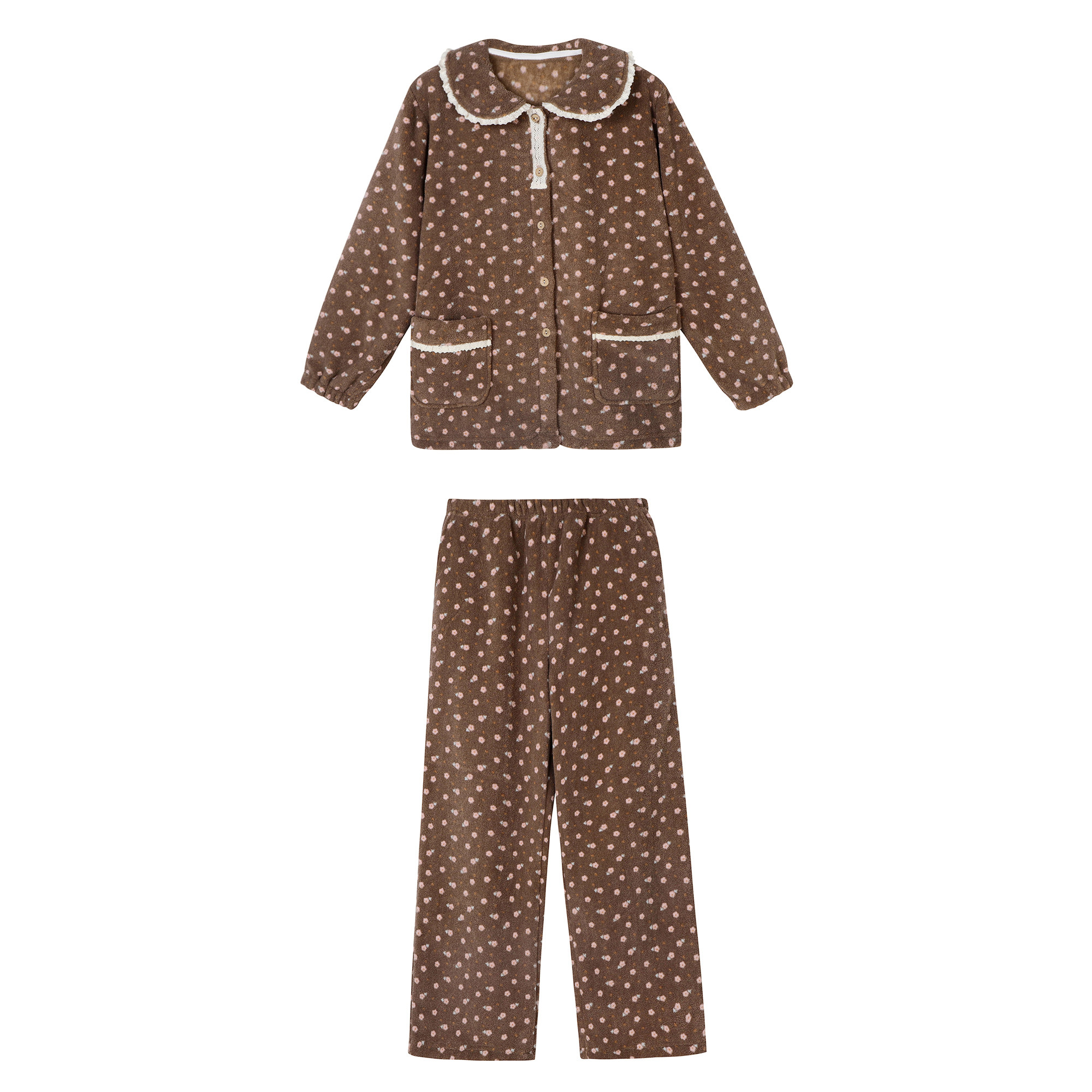 馨帮帮Homedress 秋冬雪粒绒碎花娃娃领睡衣女加绒加厚外穿家居服