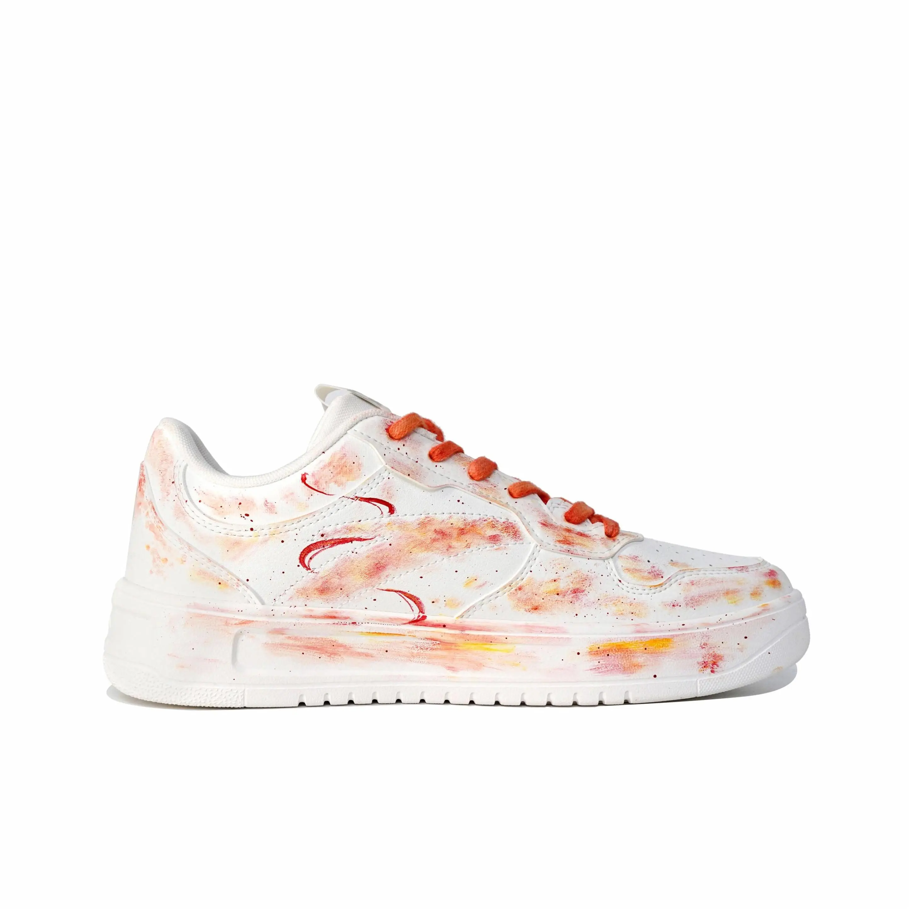 A定制球鞋Anta安踏 莲鲤织 水墨晕染 防滑耐磨低帮板鞋男款白红橙