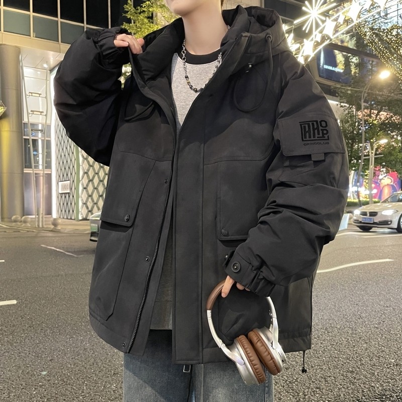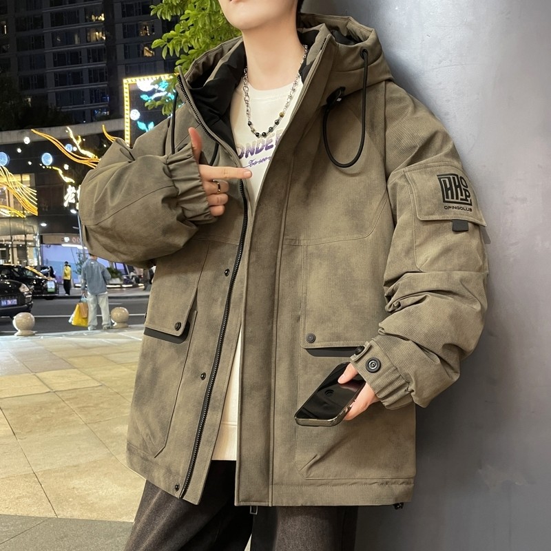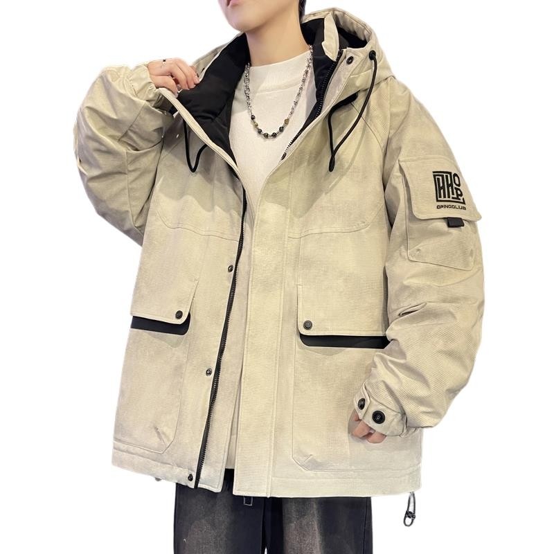 潮牌工装羽绒服男款2025冬季白鸭绒连帽外套青少年保暖防寒服以純