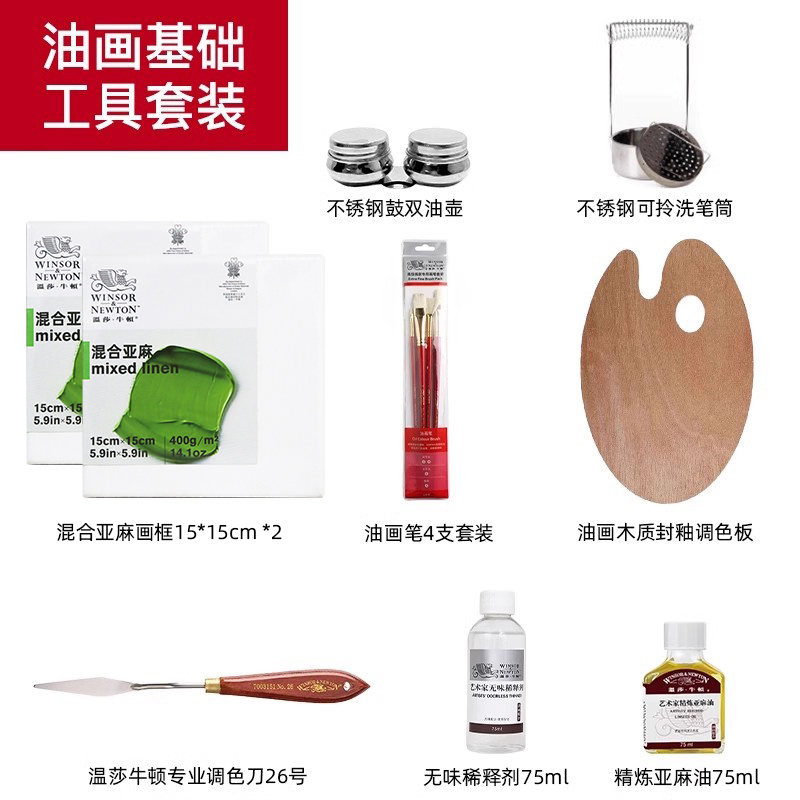 温莎牛顿油画颜料画家专用初学者儿童绘画单支管状油彩颜料套装12色24色36色白色金色钛白170ml/45ml双油壶
