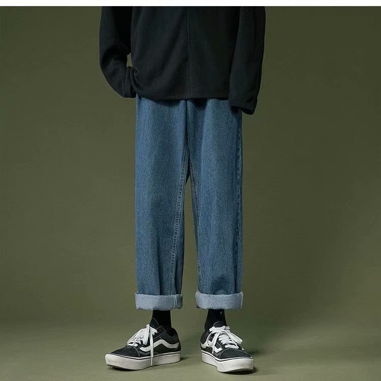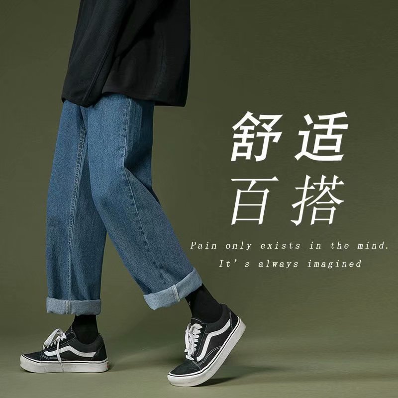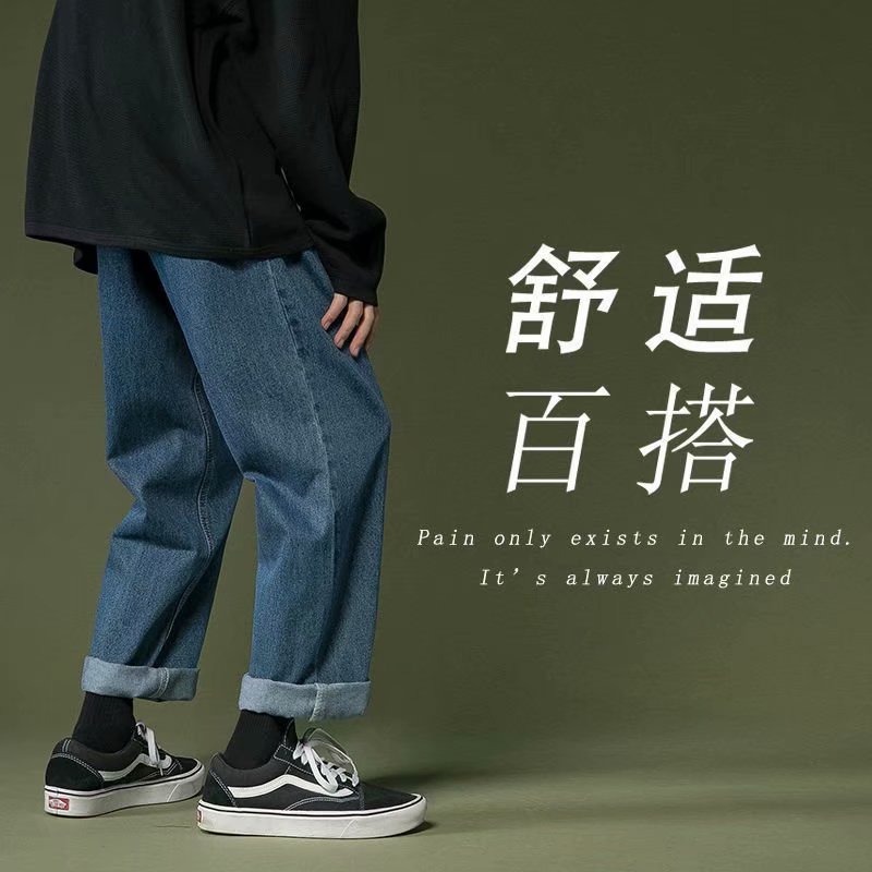 牛仔裤男春秋宽松潮流大码百搭休闲直筒裤港风潮牌百搭小脚九分裤