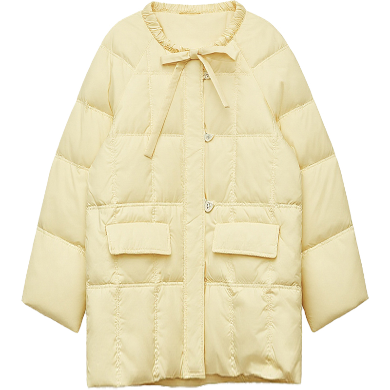 DM100大码百分百女微胖mm冬季设计感豆腐格中长款加厚羽绒服外套