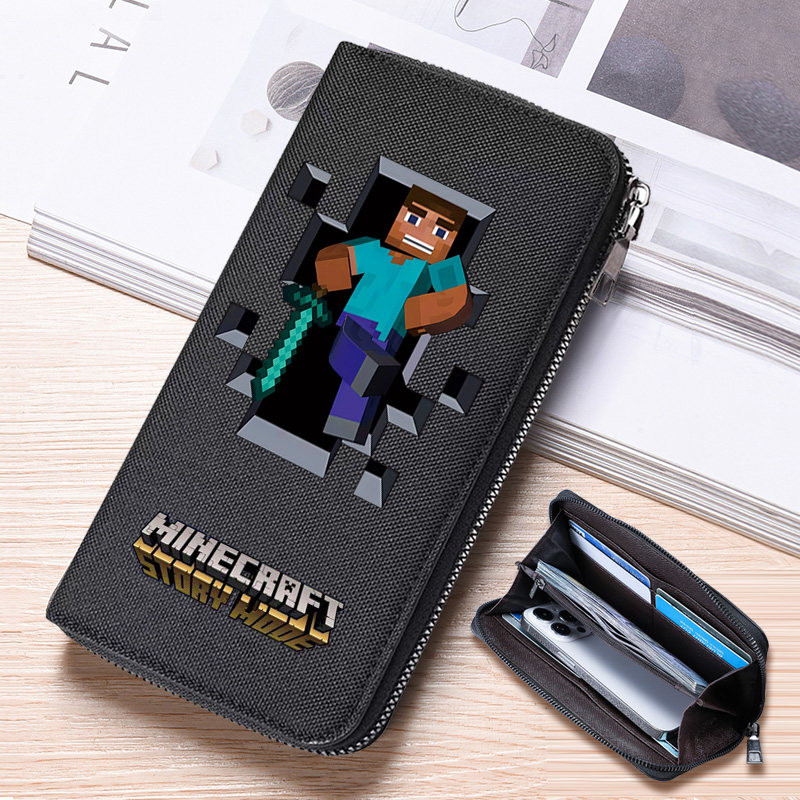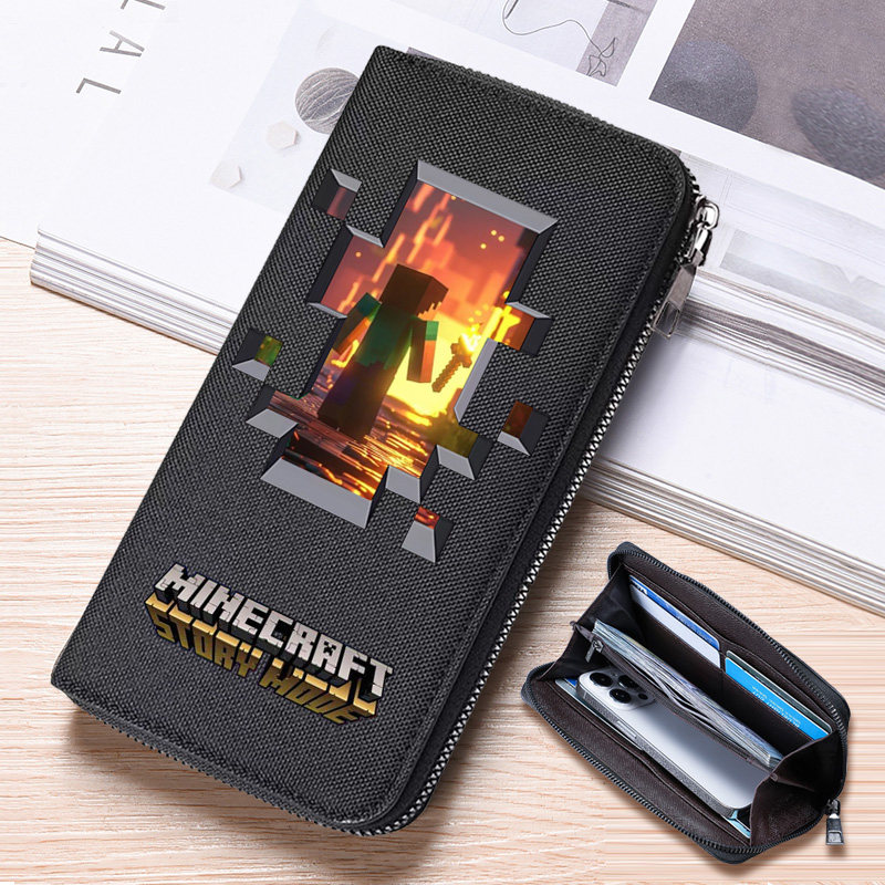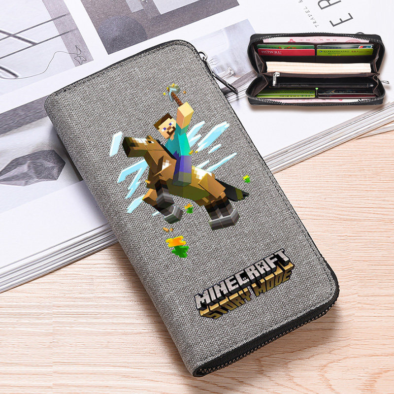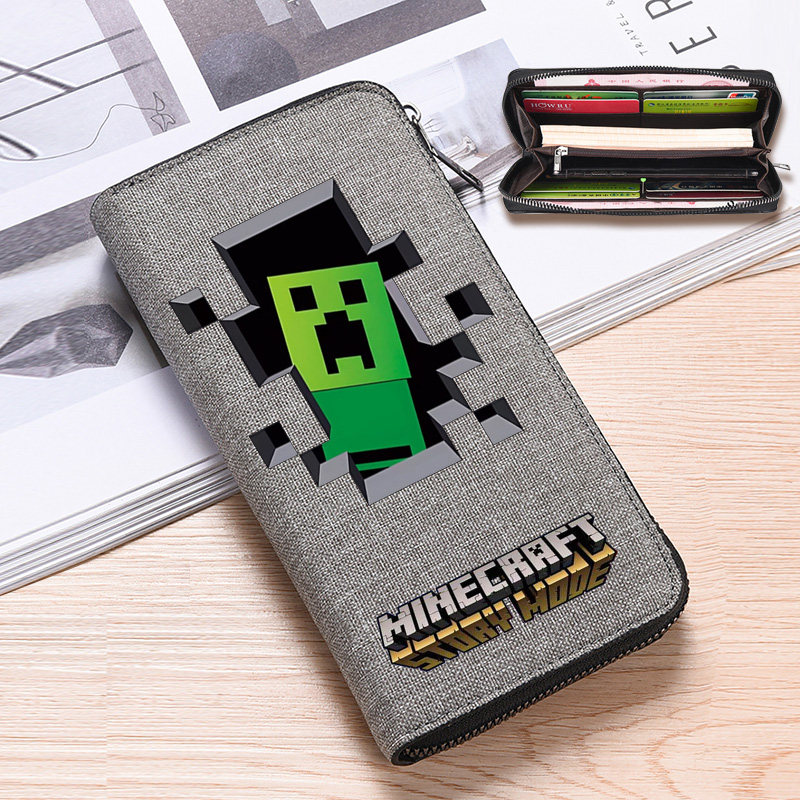 我的世界周边钱包卡通儿童男学生折叠帆布长款多卡位零钱包新款MC