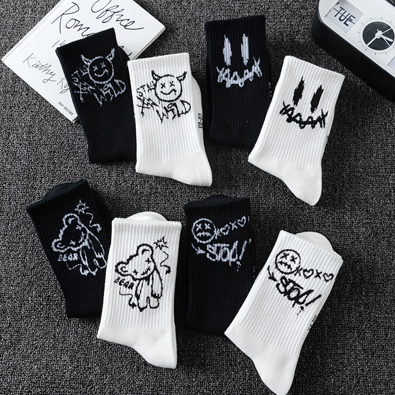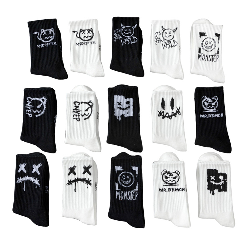 KUUK鬼脸大码情侣袜篮球运动棉袜秋冬季黑白色长袜男款中筒袜子