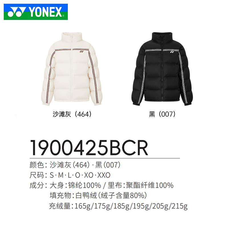 YONEX尤尼克斯羽毛球服YY男女运动休闲羽绒服保暖外套1900425BCR