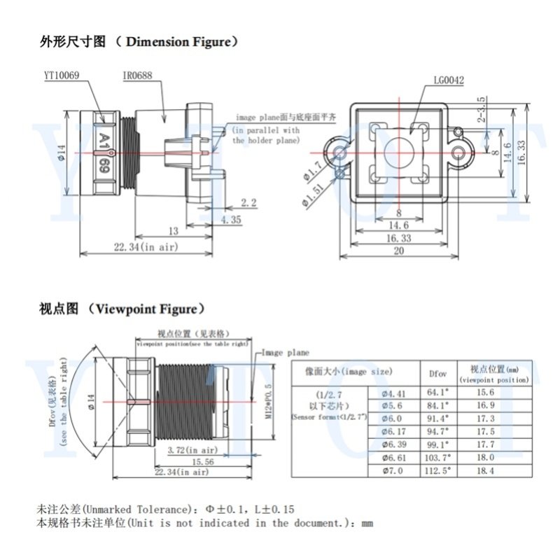 黑光镜头F1.0夜视全彩YT10069+IR底座M12接口摄像头配件 宇瞳镜头