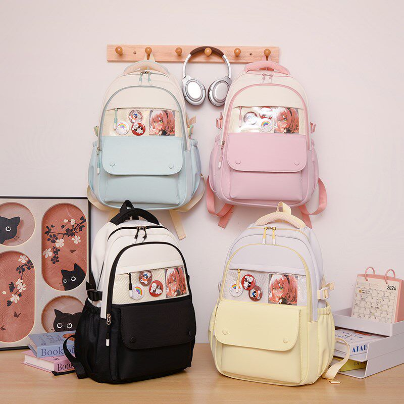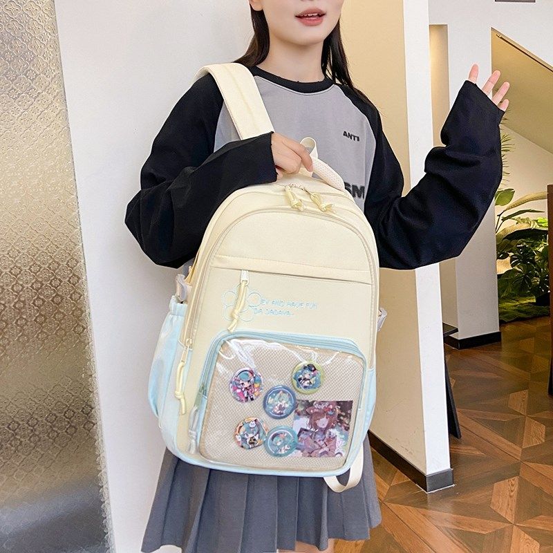 中小学生书包女生日韩简约风轻便大容量双肩背包定制印字logo痛包