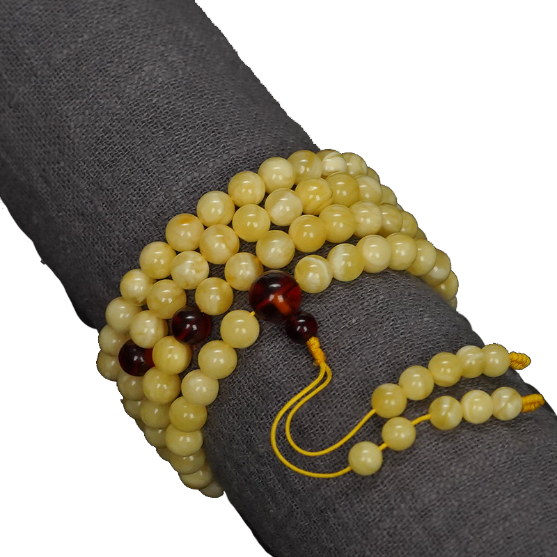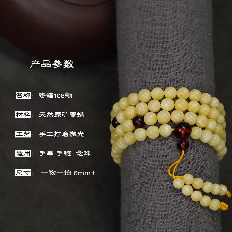 6毫米天然蜜蜡108颗文玩长串多圈手链手串念珠原矿鸡油黄白花蜜