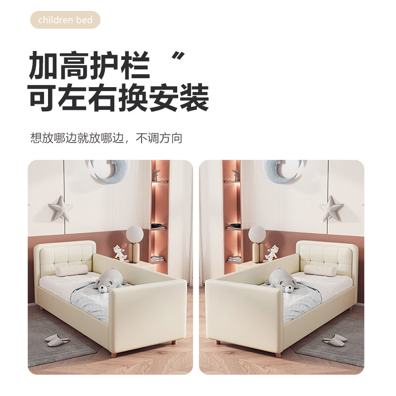 意式奶油风儿童床可拼接软包防碰