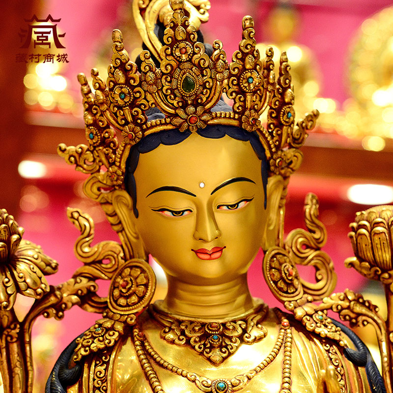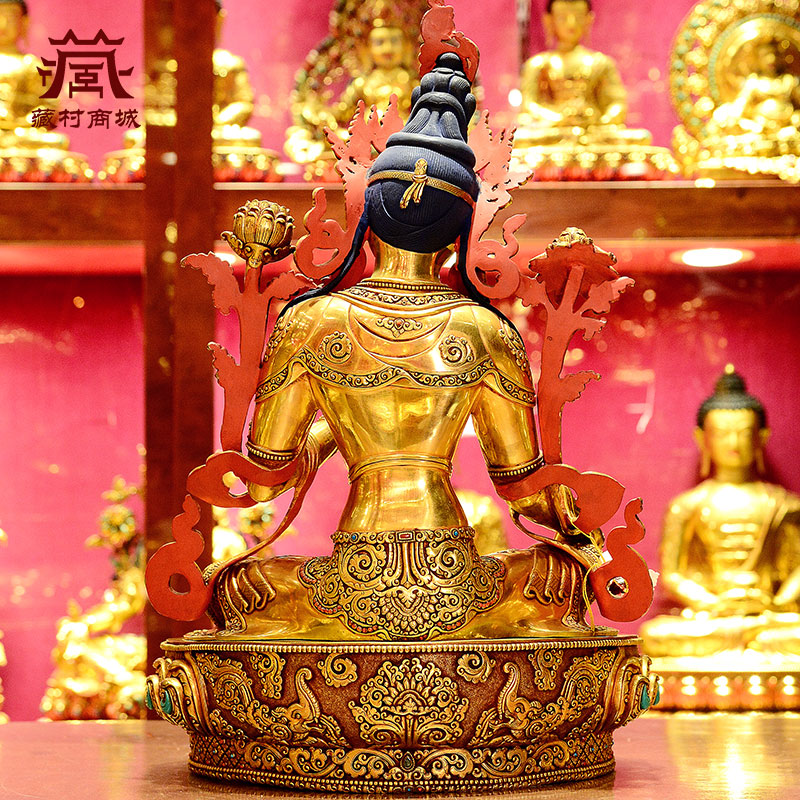 尼泊尔进口《绿度母》室内家用释迦族手工《绿多罗观音》铜像摆件