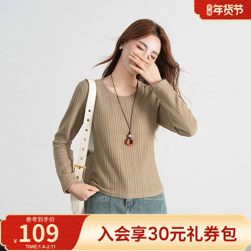 热风女士文艺气质长袖打底衫秋冬美拉德复古时髦百搭通勤休闲T恤