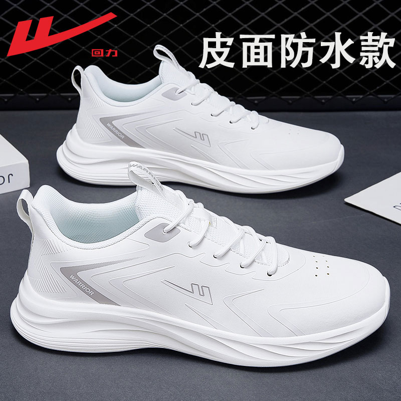 回力男鞋白色运动鞋男款2025新款皮面防水鞋子男士超轻减震跑步鞋