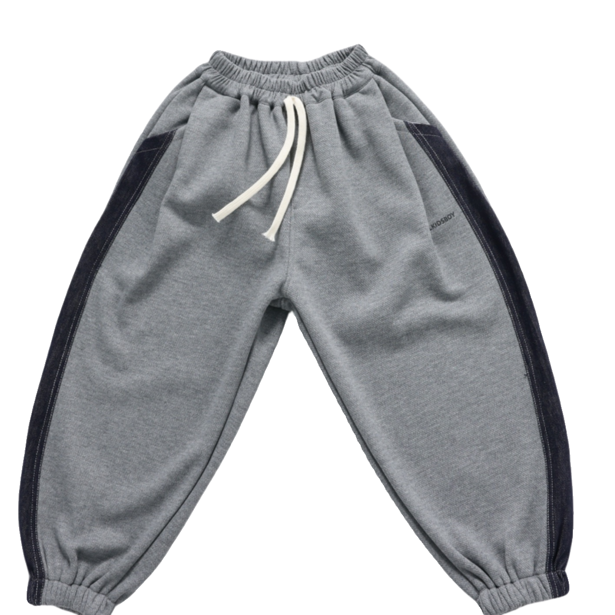 帅气高街潮酷男童侧拼牛仔加绒运动休闲卫裤中大童宽松一体绒长裤
