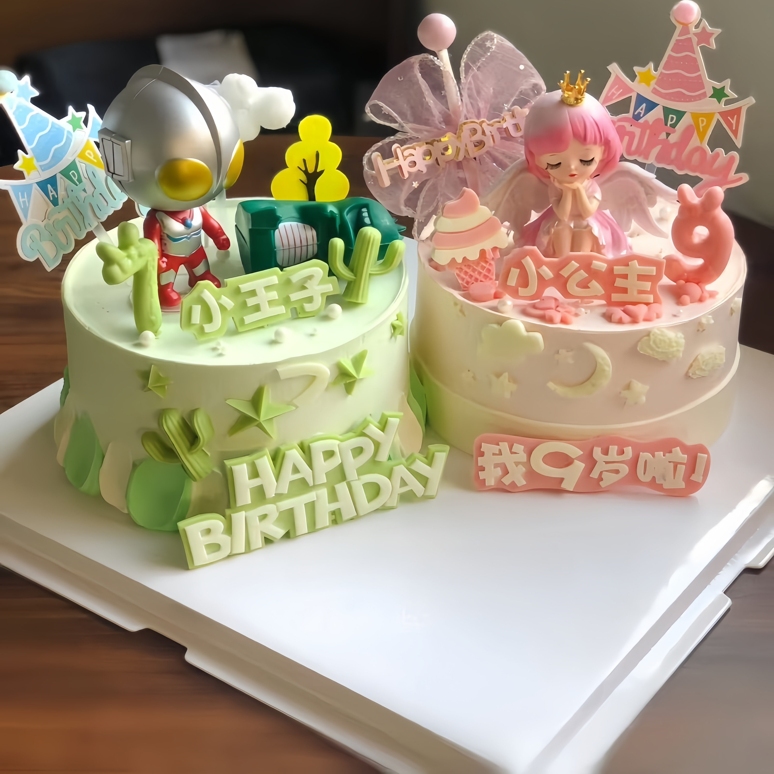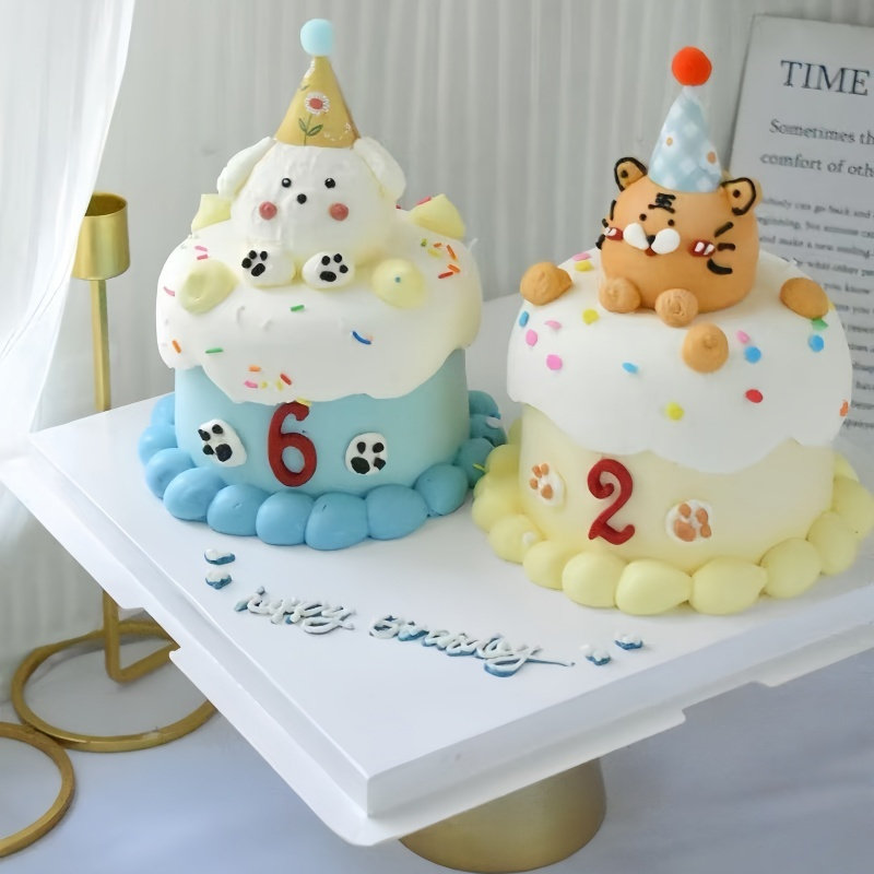双胞胎卡通动物奶油生日蛋糕
