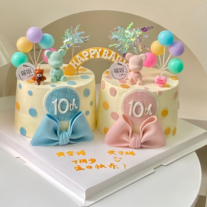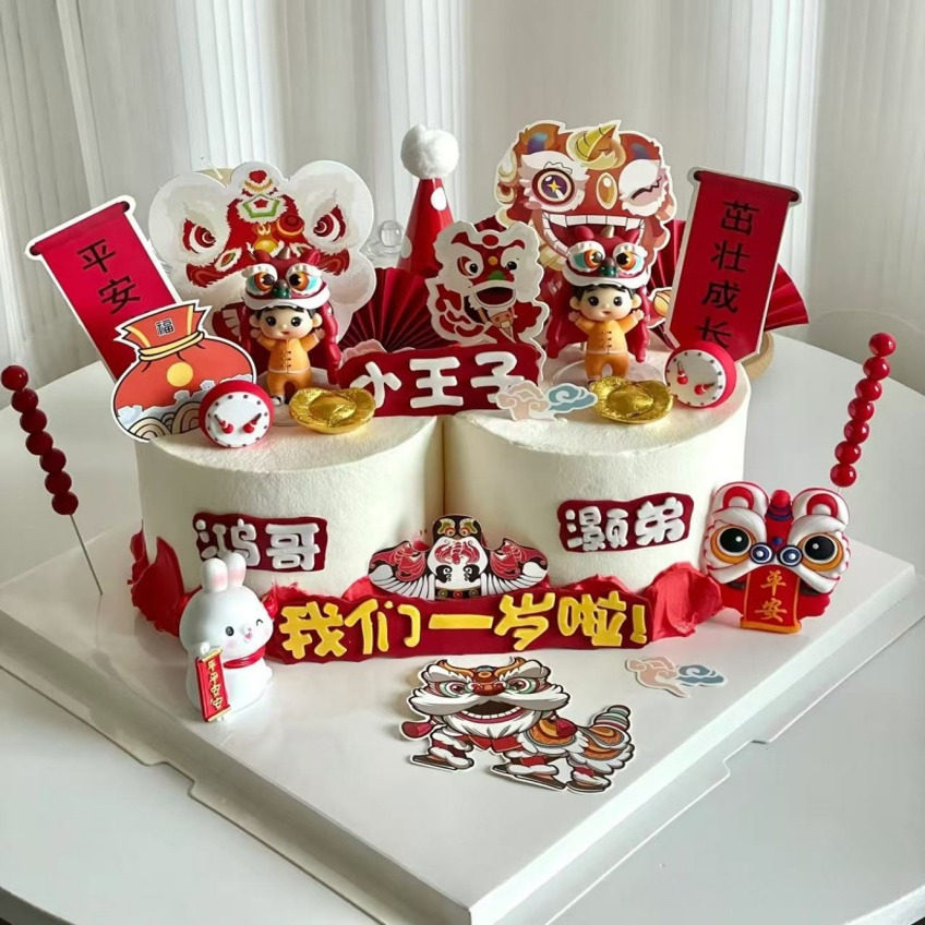 成都创意儿童双胞胎卡通动物奶油生日蛋糕成都同城配送