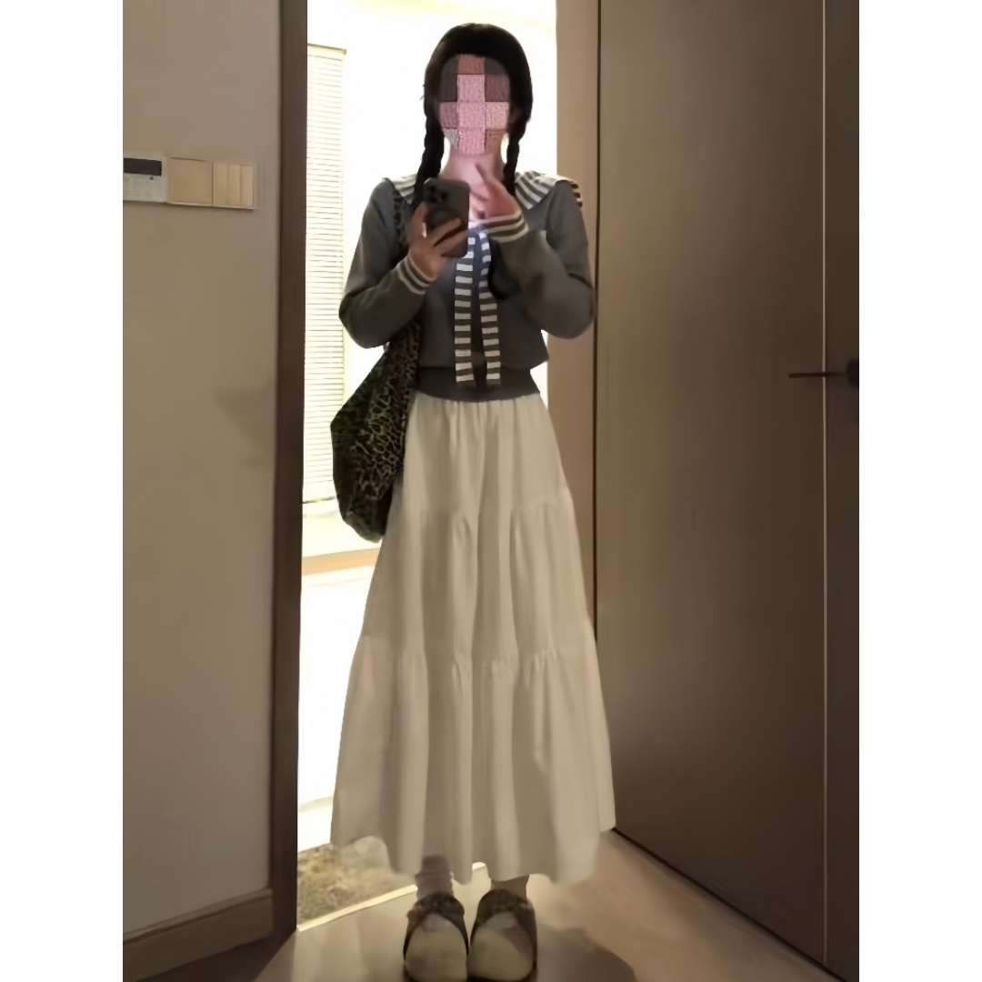 2025秋冬新款慵懒风减龄假两件针织毛衣v领针织衫高腰半身裙套装
