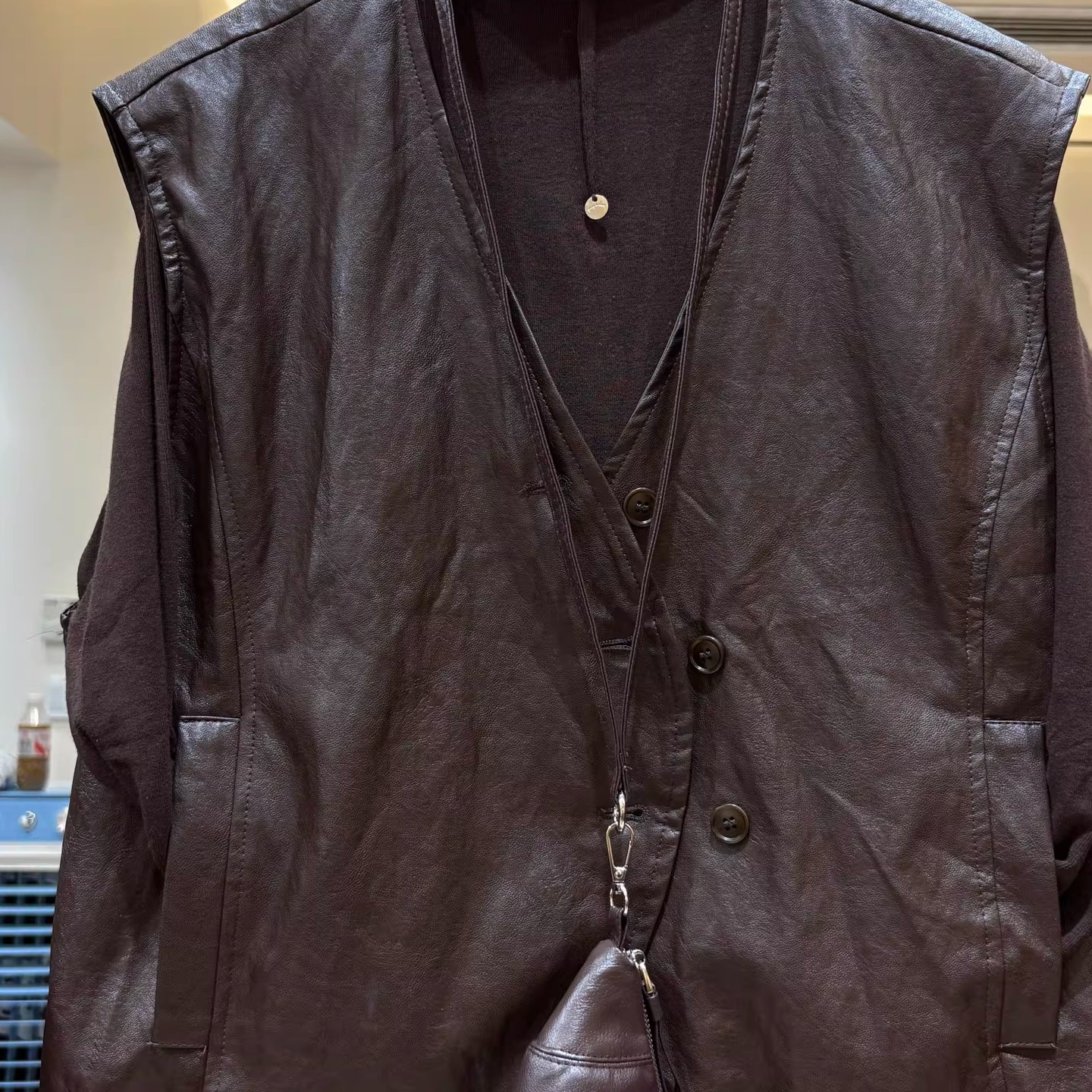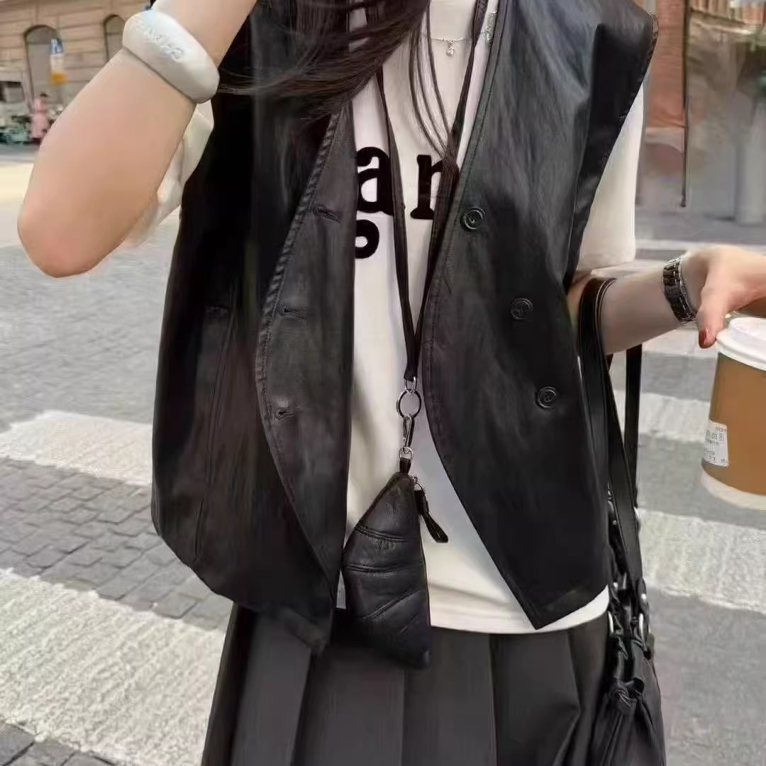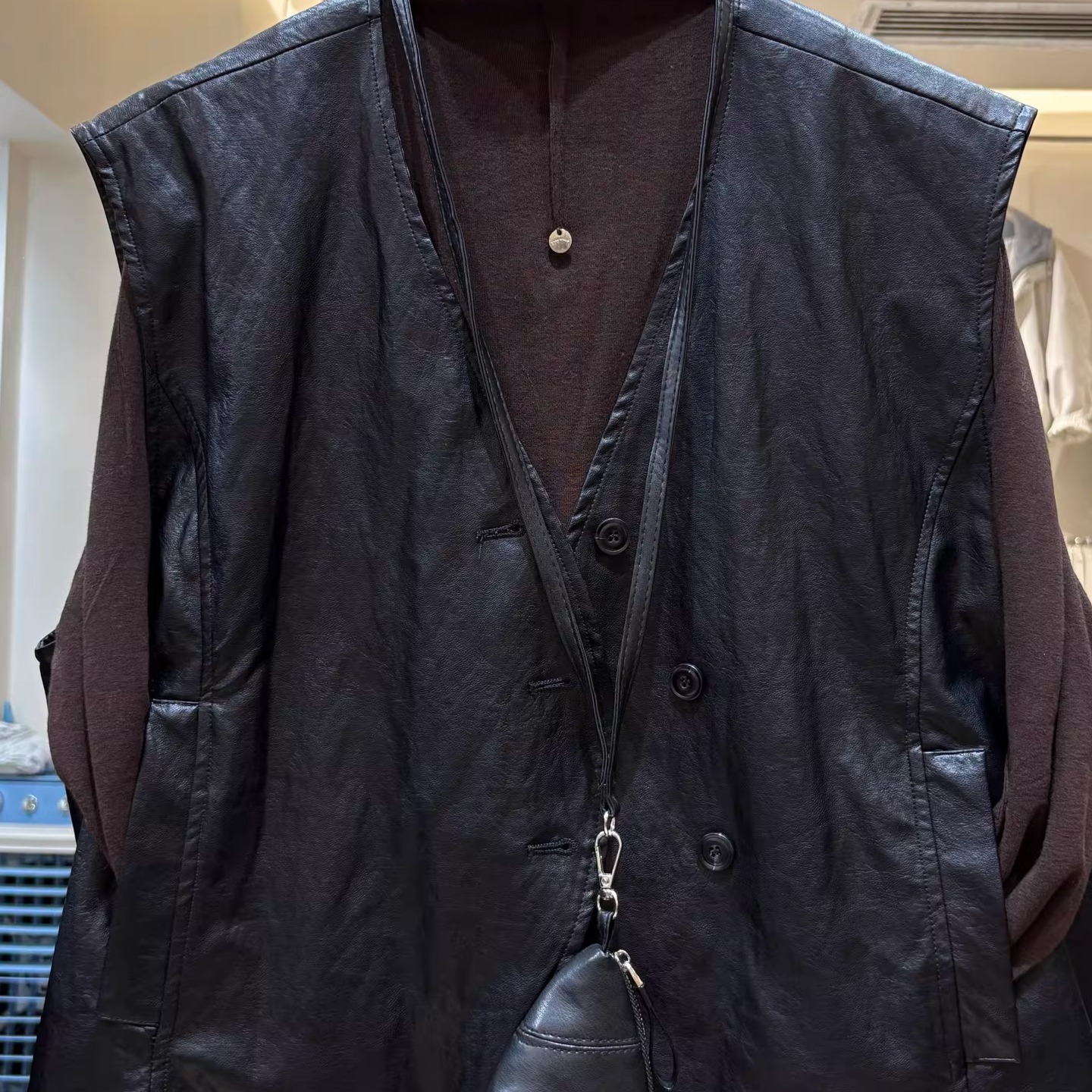 pu皮马甲女秋季新款V领百搭宽松休闲背心叠穿上衣配小包雪0.48