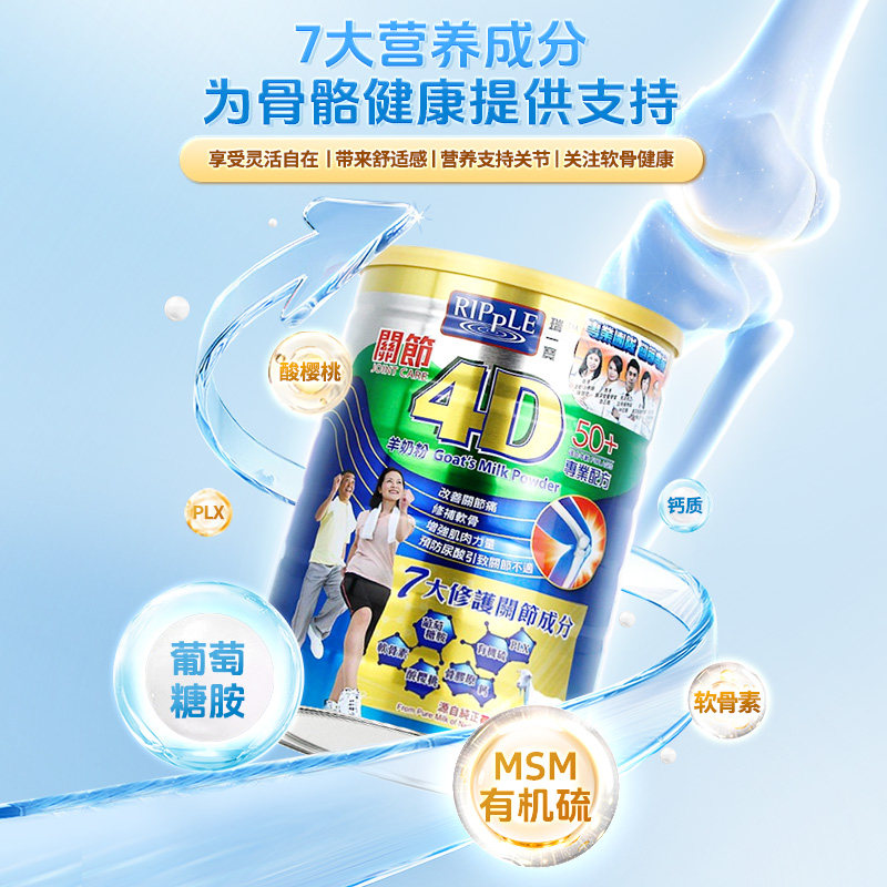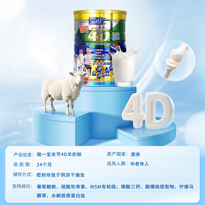 Ripple瑞一宝官方旗舰店4D关节羊奶粉中老年高钙营养奶粉800g*3罐