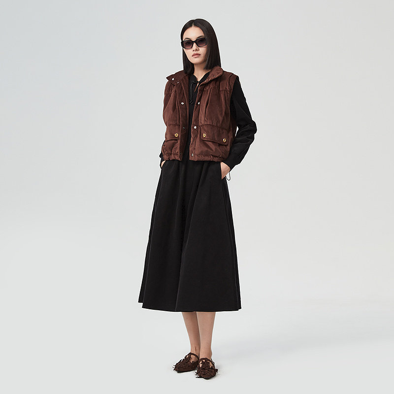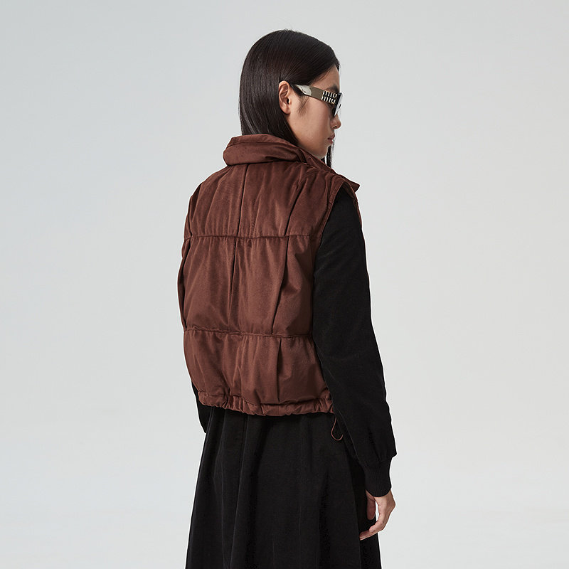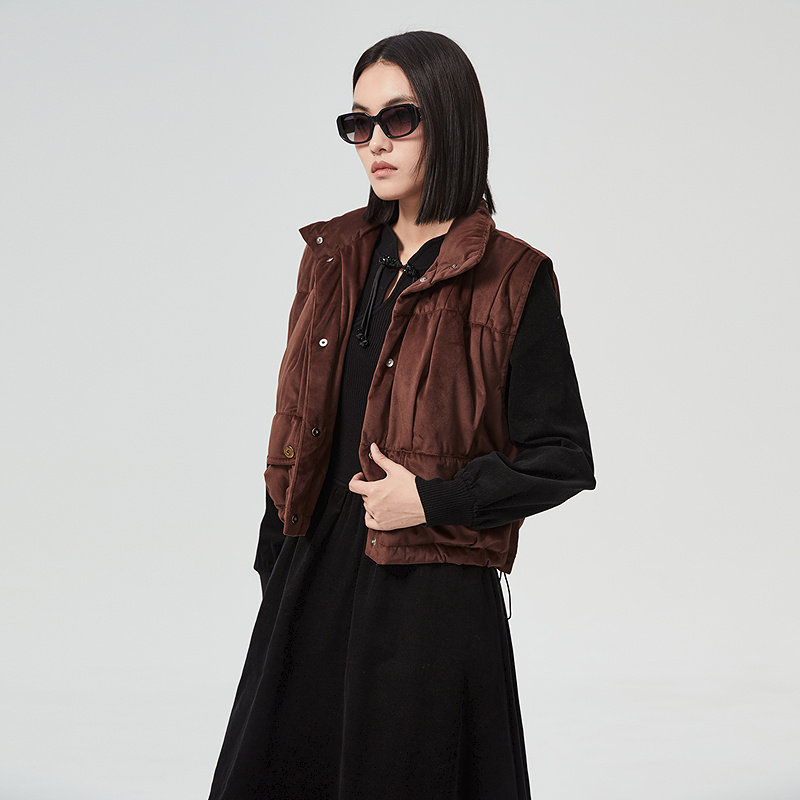 普普风商场同款2025年冬季新款保暖棉服绒感立领帅气羽绒棉马甲女