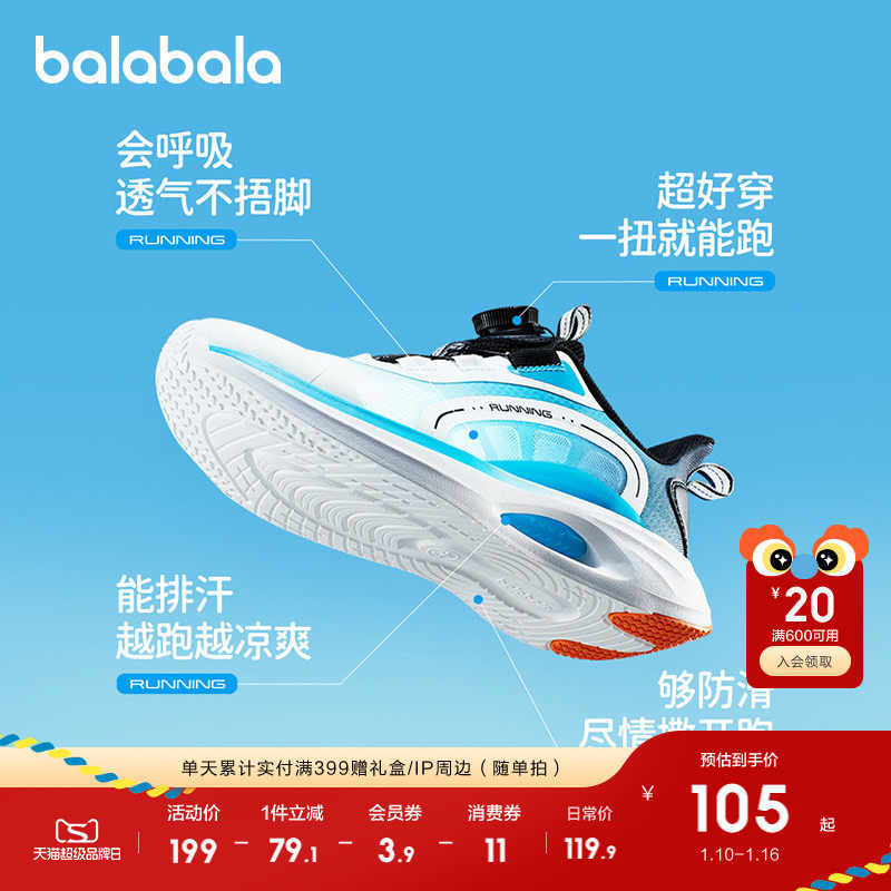 巴拉巴拉童鞋儿童运动鞋秋季跑步鞋男童鞋子轻透气校园旋转扣网鞋