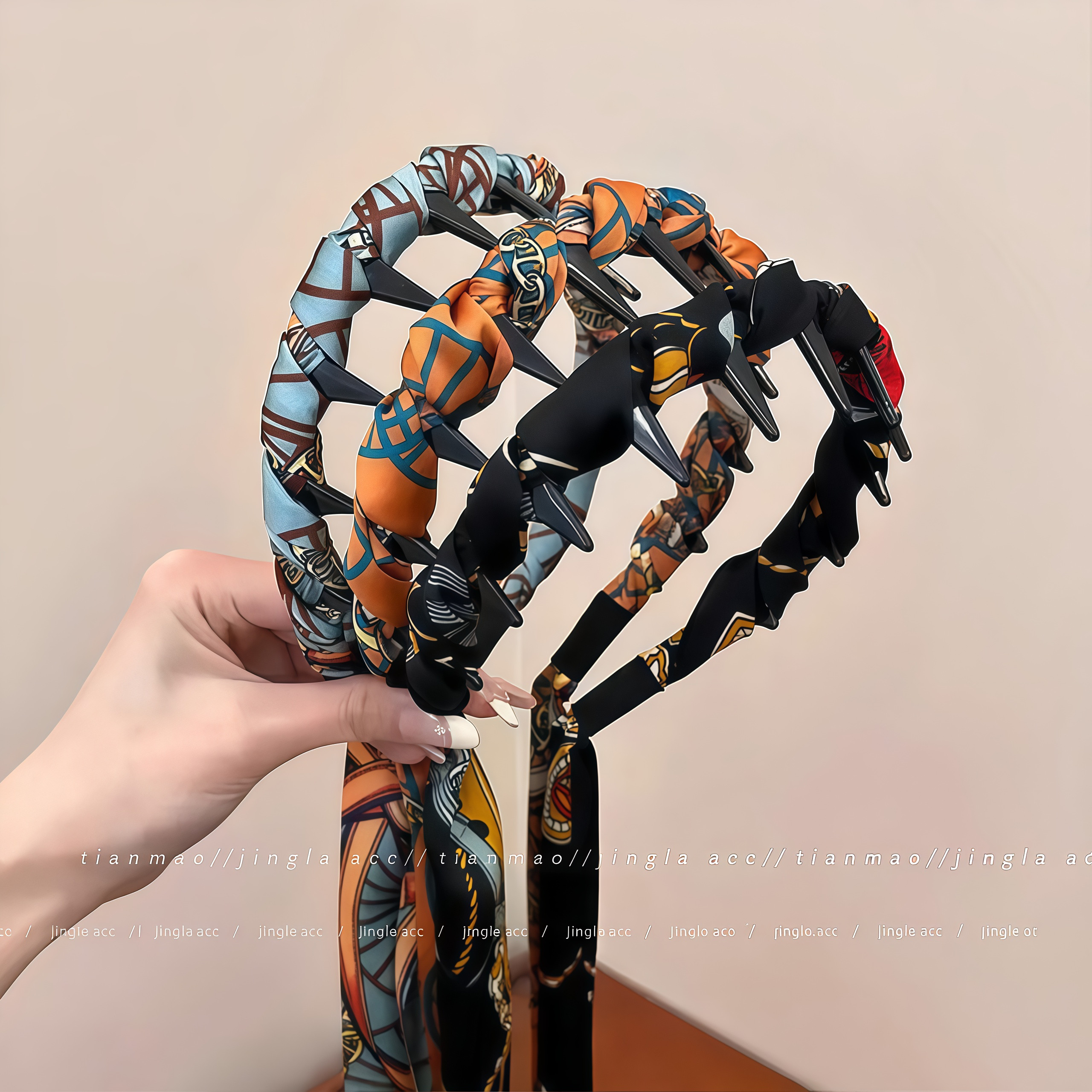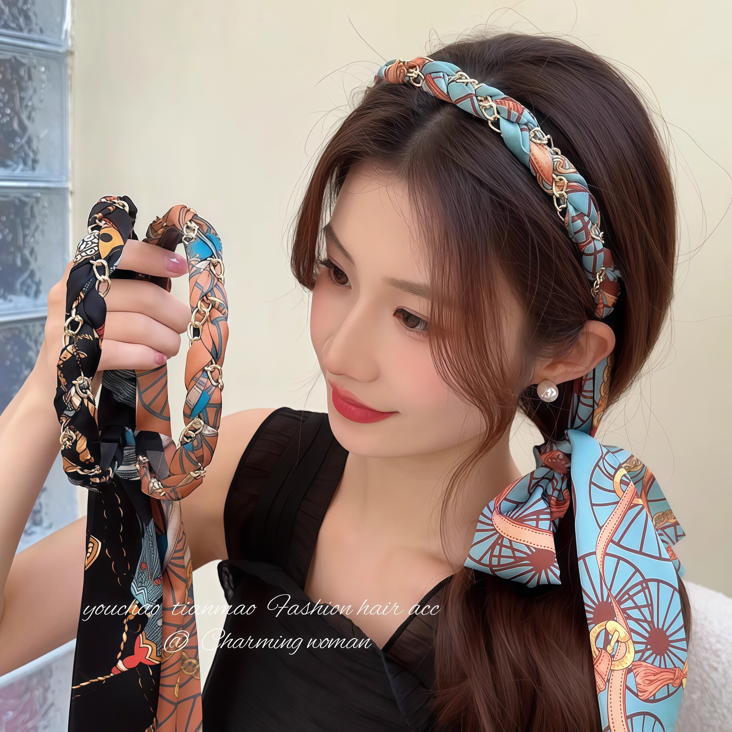宫阙复古繁花飘带齿梳波浪高颅顶发箍正反两戴绑发一体头箍头饰女