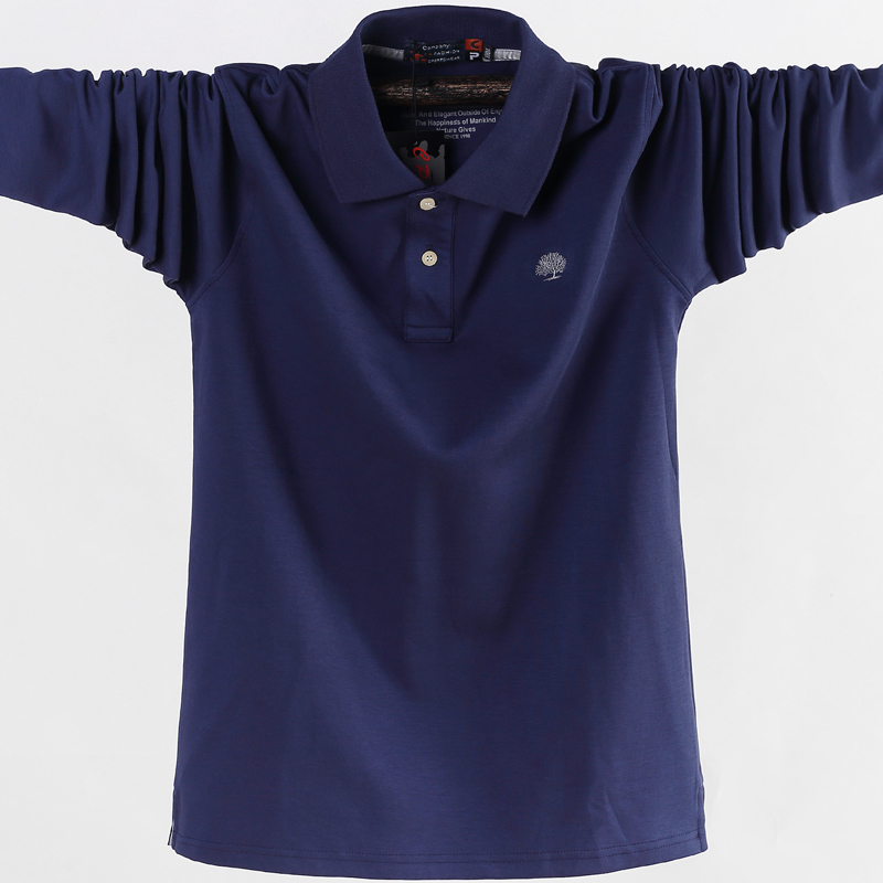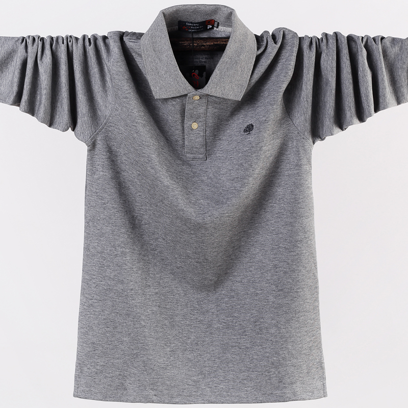 秋装纯色加大码长袖t恤男纯棉加肥商务Polo衫肥佬爸爸装中厚秋衣