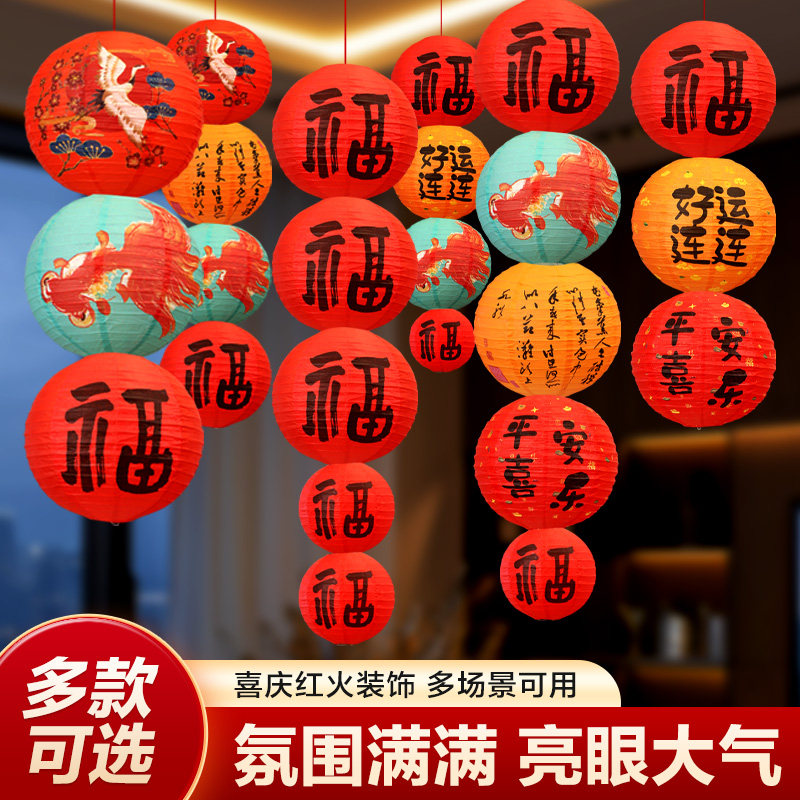 新年国风纸灯笼商场店铺福字挂件装饰品春节过年室内古风氛围布置