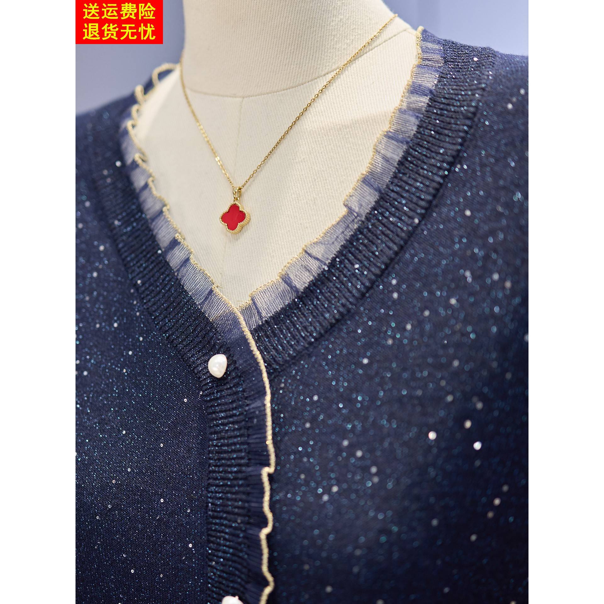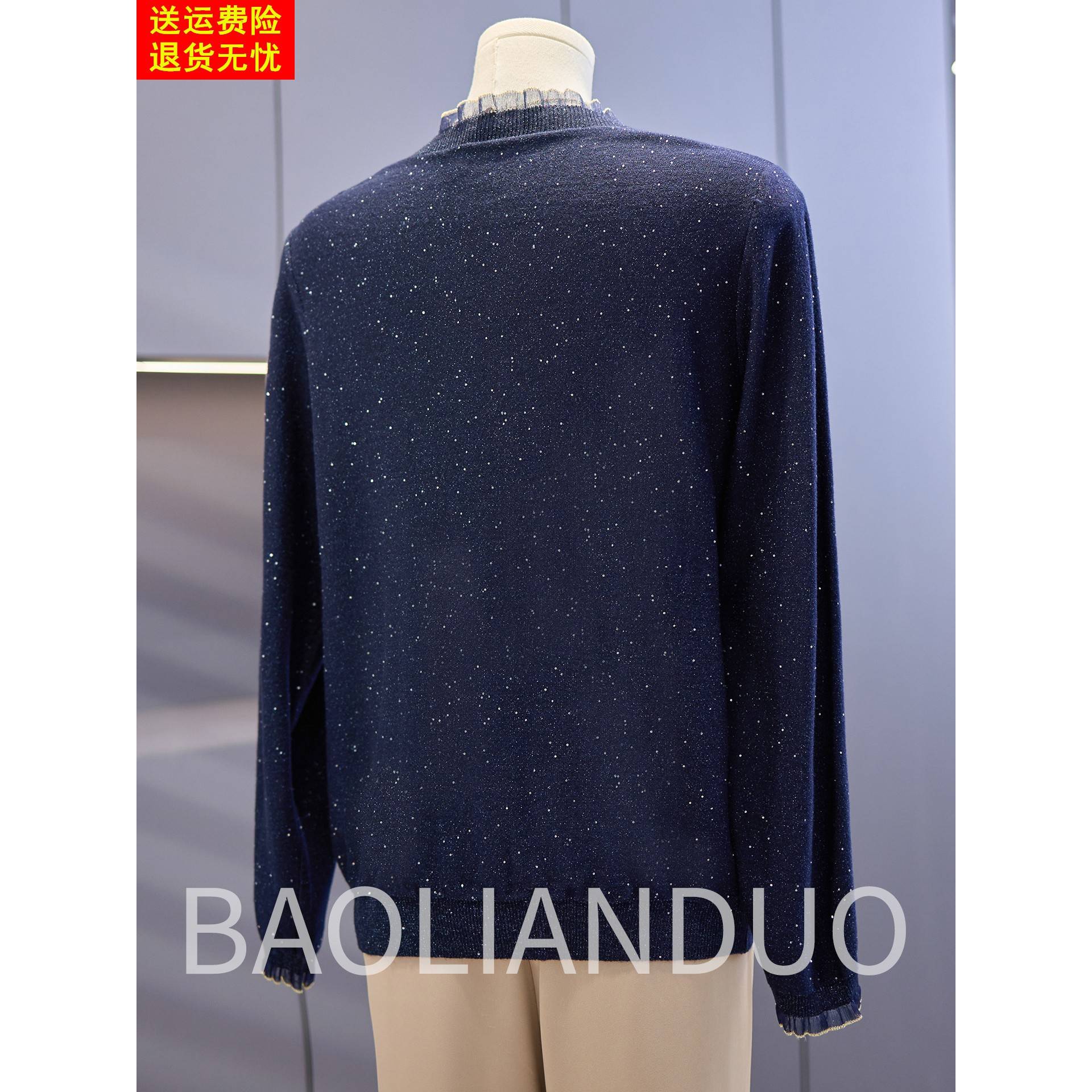 妈妈秋装新款长袖T恤中年女装洋气花边领上衣中老年冰丝针织小衫
