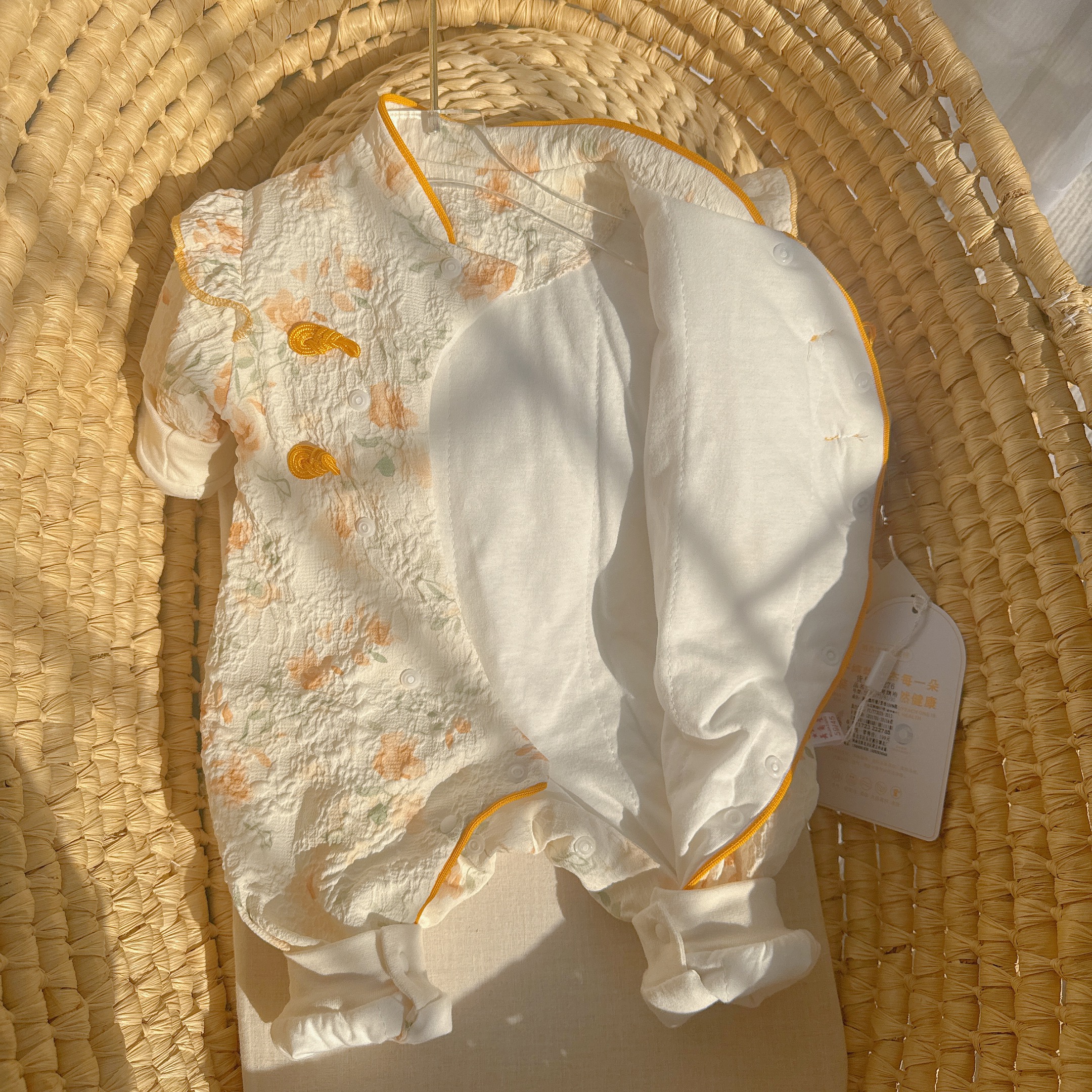婴儿连体衣秋冬季薄棉夹棉哈衣女宝宝中国风新生儿衣服秋装外出服